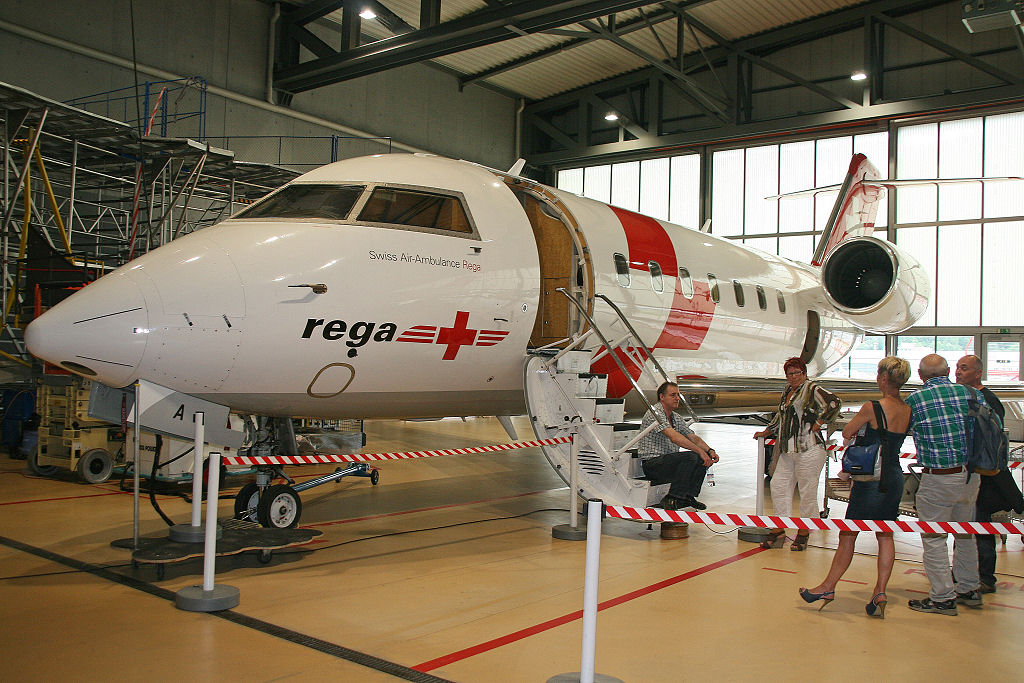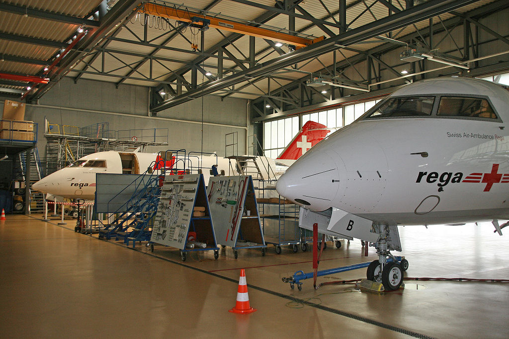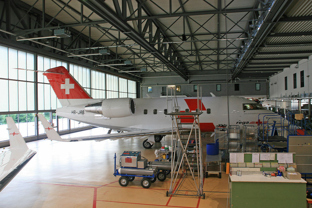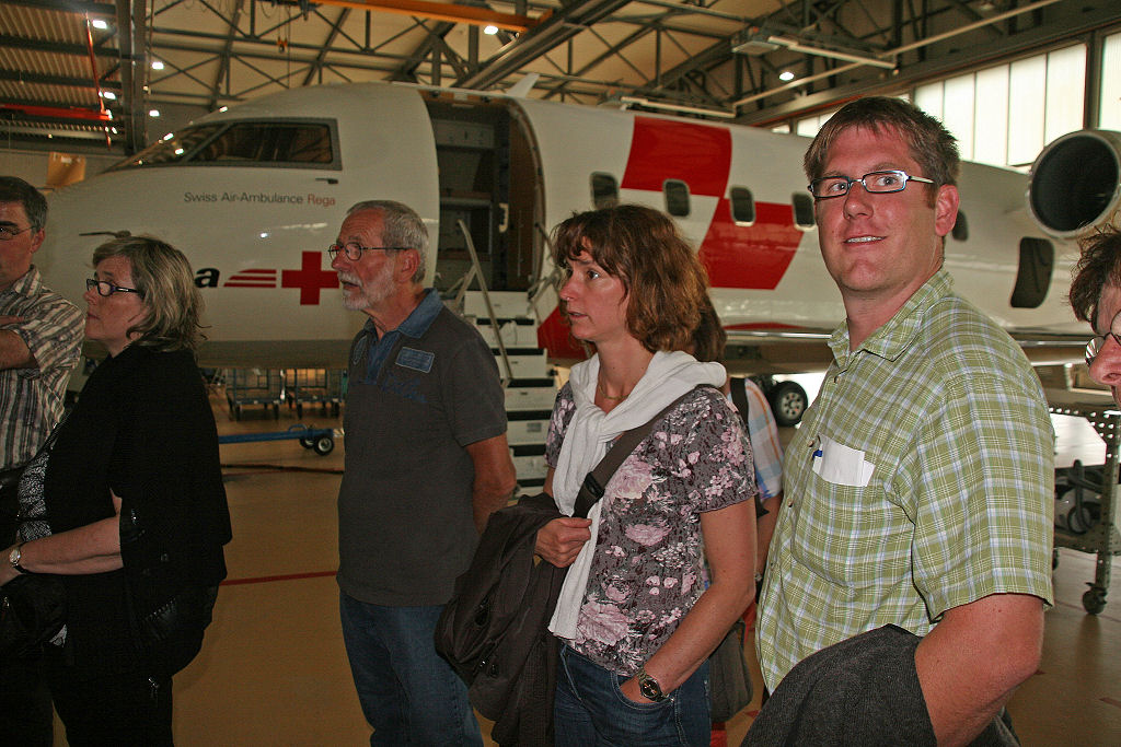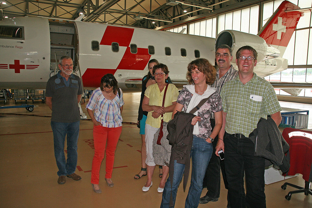 Verschiedene Helikopter und ein Ambulanzjet finden wir anschliessend im Hangar. Fotografieren dürfen wir nach Herzenslust … nur nicht die Mitarbeiter der REGA!