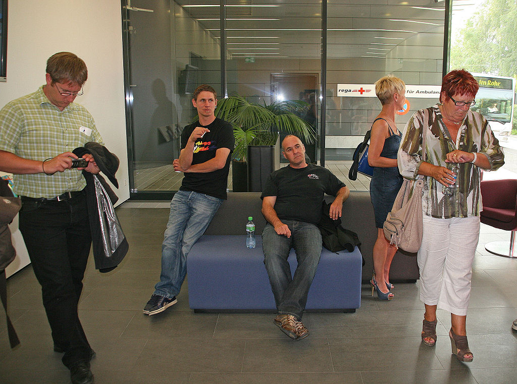 Per Bus lassen sich 20 Delphine am Abend des 30. Mai 2012 zum REGA-Center nach Zürich-Kloten chauffieren. Gekonnt weicht unser Fahrer dem Rush-hour-Stau aus, so dass wir pünktlich auf die Minute eintreffen.