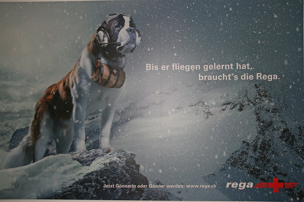 Zunächst lernen wir einiges über die Geschichte der REGA, die am 27. April 1952 im Hotel Bären in Twann das Licht der Welt erblickte. Aller Anfang ist natürlich schwer und so kämpfte auch die Rettungsflugwacht mit Rückschlägen und Unfällen. Doch Jahr für Jahr ging es aufwärts: das Material verbesserte sich, die Einsätze gewannen an Professionalität und es musste nicht mehr „gepröbelt“ werden, wie dies noch 1953 beim Absprung der Fallschirmretter mit Lawinenhunden der Fall war.