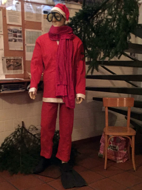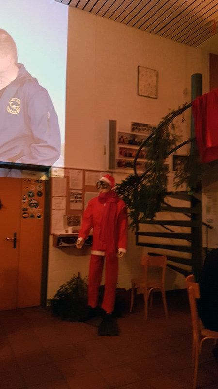 Am Morgen brachten wir mit vereinten Kräften unseren schön geschmückten Christbaum neben dem Clublokal auf die Beine, der mit seinen bunten Kugeln und Leuchtkerzen sowie Flossen die Vorbeikommenden grüsst. Nach getaner Arbeit gab’s den obligatorischen Glühwein mit Brezeln.