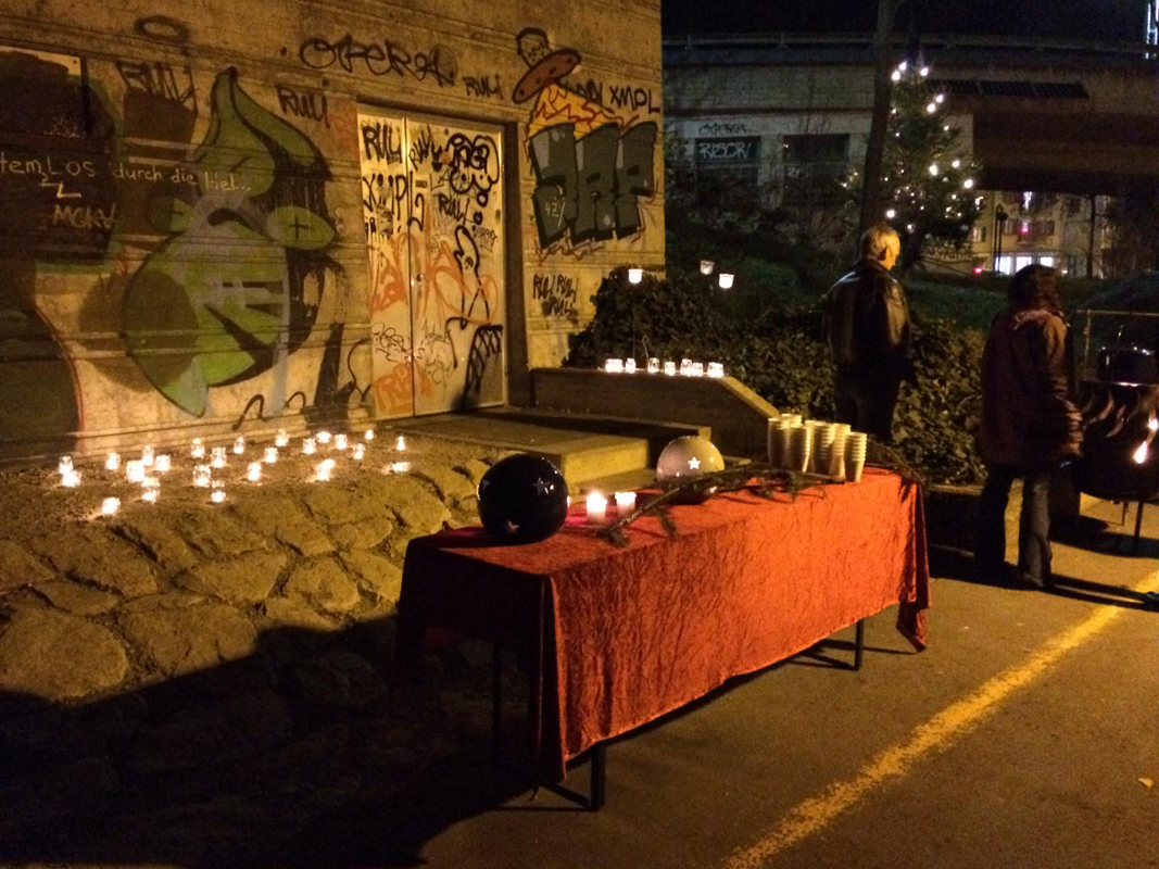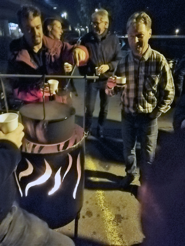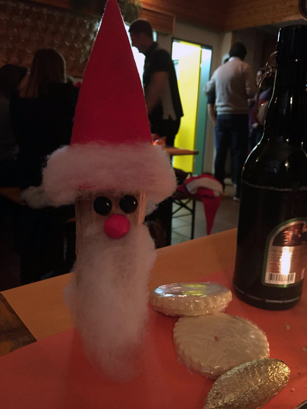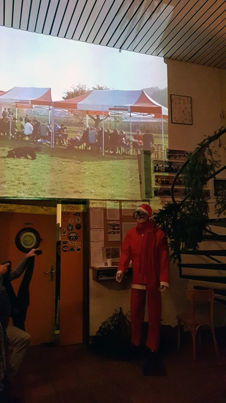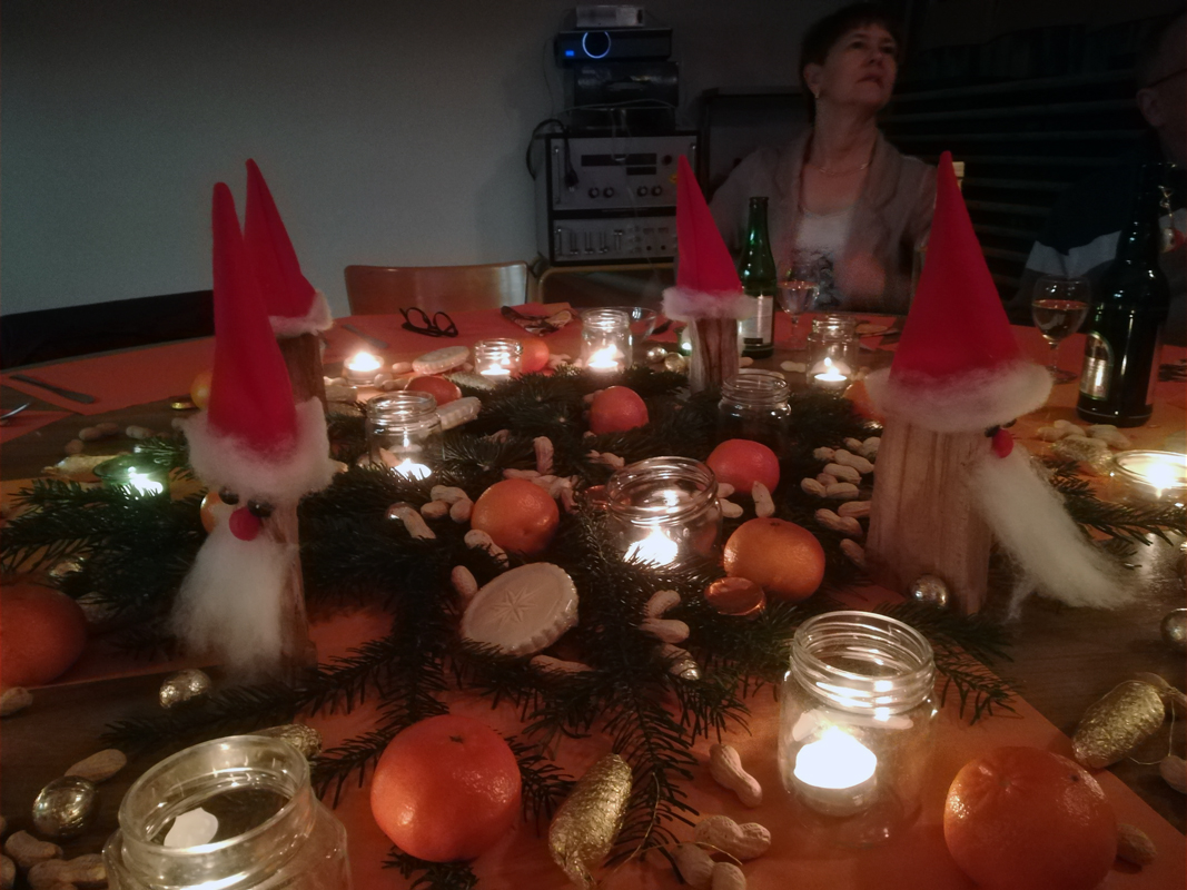 Diesmal dachten sich die Organisatoren etwas Neues aus: Vor dem Eingang des Clublokal empfängt uns das Komitee sehr einladend mit Glühwein und heissem Tee. Leuchtende Kerzen laden zum Verweilen und Konsumieren ein.