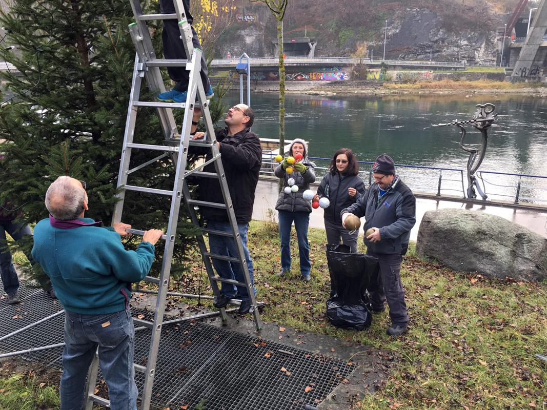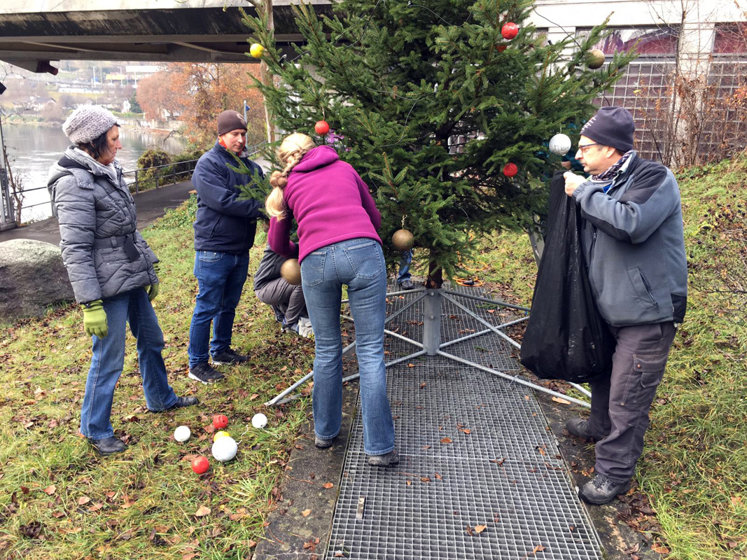 Der Christbaum wurde von 12 wackeren Delphinen rechtzeitig vor dem gleichentags stattfindenden Chlaus-Höck gestellt und geschmückt. Er wurde am Abend von Vielen aus der Delphin Familie bestaunt. Danke an alle Helfer, Kletterer, Glühweinkocher, Chrampfer und «Gaffer».