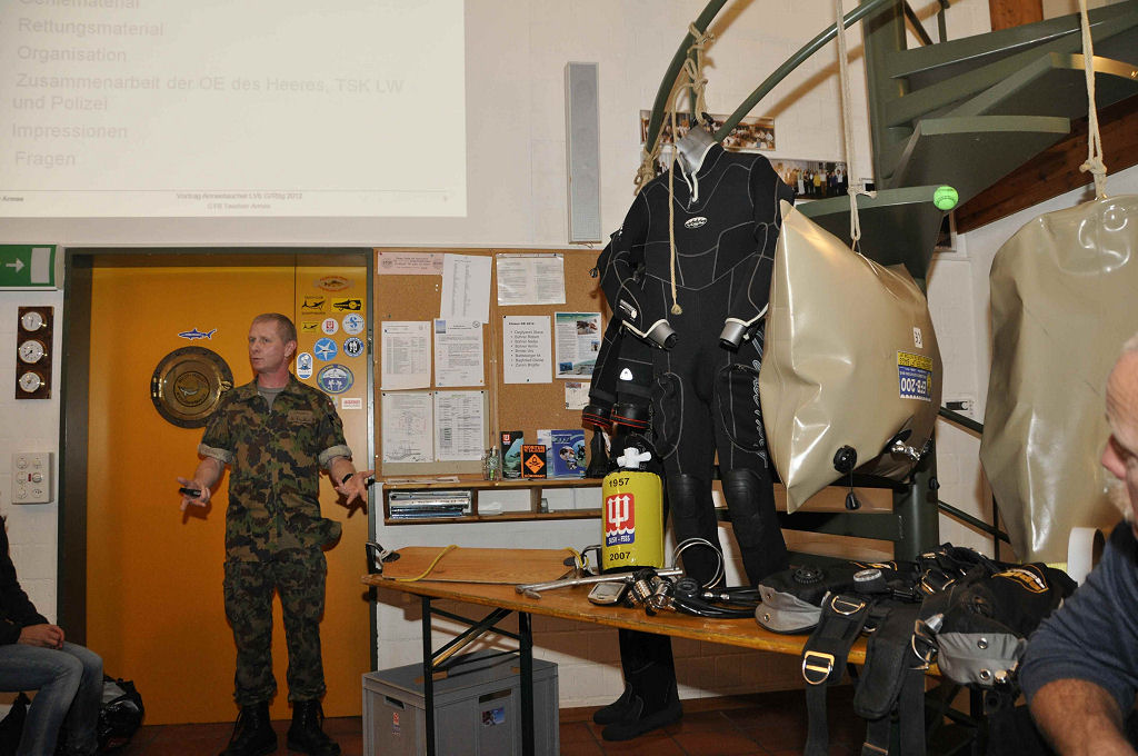 Organisiert von einem unserer Clubmitglieder besuchte uns Stabsadj Claudio Demarmels, Chef Fachbereich Tauchen der Schweizer Armeetaucher.