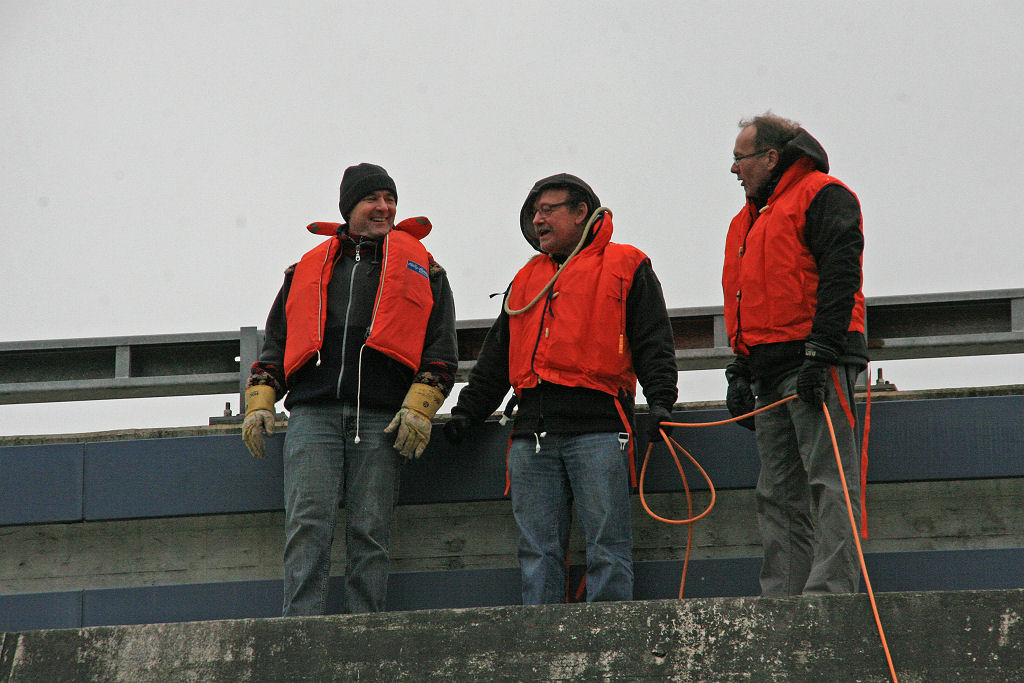 Am Schluss müssen wir unseren Freischwebenden wieder einholen und auf die altbewährten Surfbretter befestigen. Danach läuft die ganze Brückenschau nochmals von vorn.