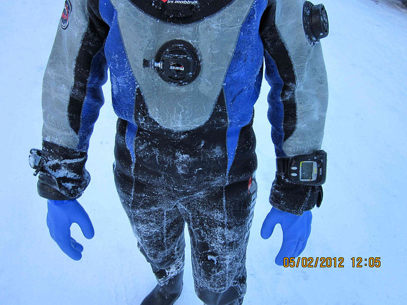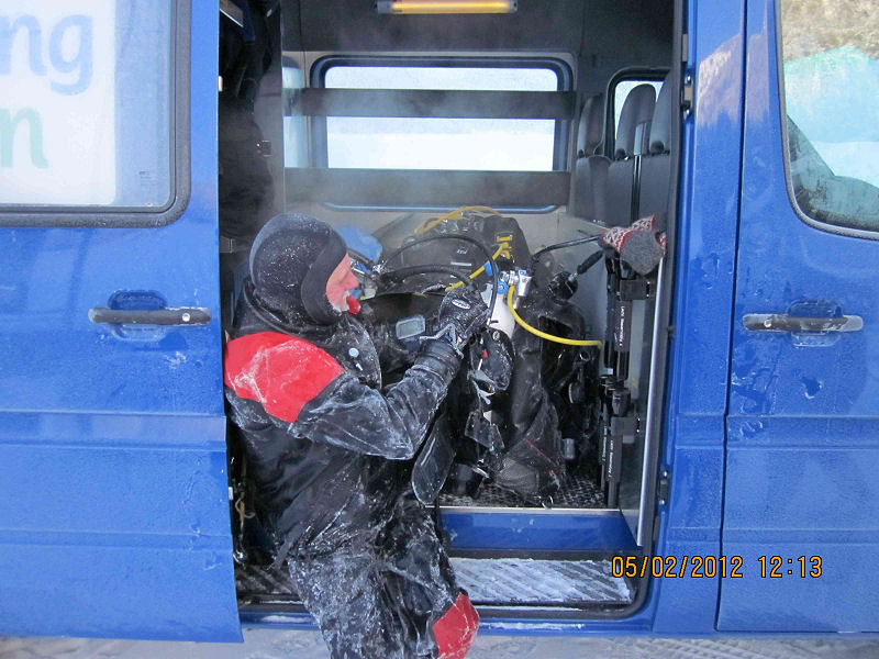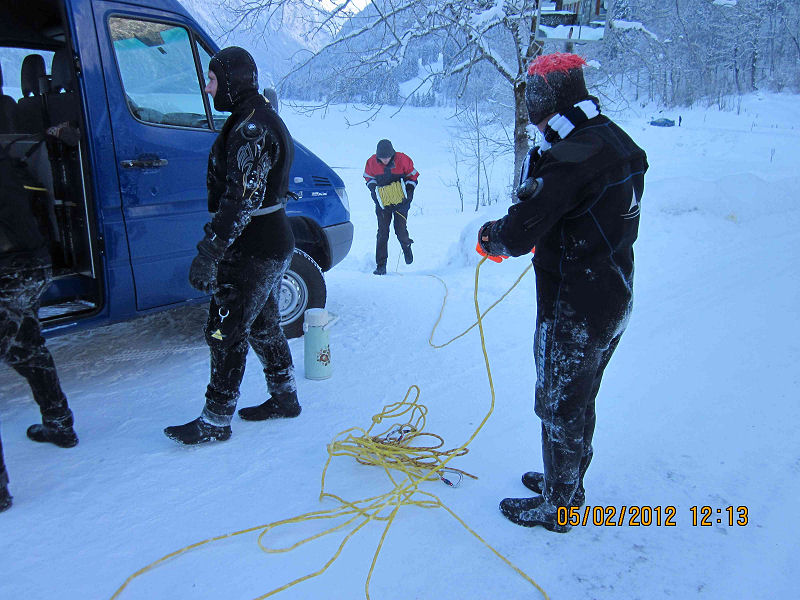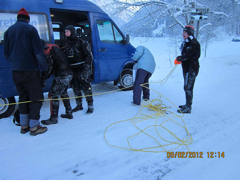 Zumindest der Webmaster hat vorher heissen Tee nur zum inneren Auftauen benutzt. Diesmal hat heisser Tee geholfen beim: Auftauen von Trocki Inflatoranschlüssen (wie kann ich sonst das Gerät ausziehen), Karabinern (auch die anderen wollen mit Seilsicherung ins Wasser) und sogar Trocki-Knien (Einmal auf den Knien einen Kollegen aus dem Loch ziehen und schon gibt’s nachher «steife Beine»).