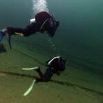 Das wunderbare Wetter und der Drang ins kühle Nass zu steigen, verleitete uns, sofort nach dem Check-in in den See zu steigen. Der Samerangersee bot uns eine spezielle Kulisse und mit Sichtweiten von bis zu 40 Metern machte der Tauchgang richtig Spass. Danach galt es, aber noch richtig im Hotel Schloss Fernsteinsee anzukommen, das Zimmer zu inspizieren und sich soweit notwendig einzurichten. Anschliessend ging es ins Restaurant zum gemeinsamen Nachtessen inkl. Theorie über Dekotauchgänge in Bergseen und zu schnellem Auftauchen. Dafür gab es, weil die Küche schon geschlossen hatte, kein Dessert mehr. So weit so schlecht. Müde von der Reise und zufrieden nach dem Tauchgang und dem feinen Essen gingen wir zu Bett.
