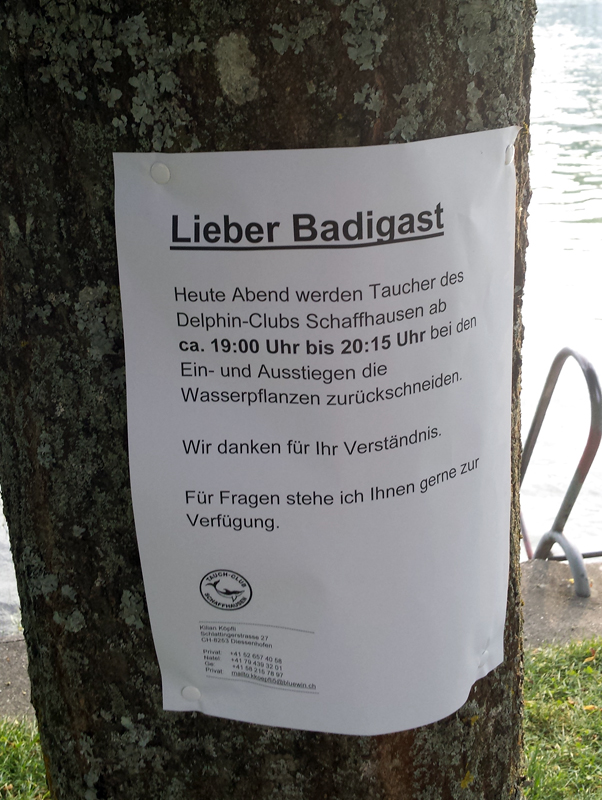 Der Tauchleiter Kilian hat nicht nur das Grasen sehr gut mit Hinweisschildern in der Badi Flurlingen ausgeschildert, sondern den ganzen Anlass top organisiert. Der anschliessend vom TL gesponserte Grillplausch schmeckte allen Helfern (zu Lande und zu Wasser) sehr gut. Die gute, langanhaltende Abend-Stimmung konnte auch nicht vom plötzlich einsetzenden Platzregen getrübt werden.