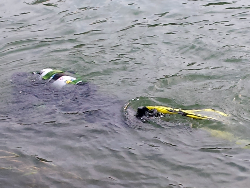 Der Spassfaktor kam nie zu kurz, denn beim Ausstieg war jede und jeder wie ein Christbaum mit (Gras-) Lametta geschmückt. Die noch anwesenden Badegäste bedankten sich mit Applaus und ganz netten Worten für die zum Teil schweisstreibende Unterwasser-Schwerstarbeit (mit nur so einer kleinen Sichel, wird so viel Wirkung erzielt).