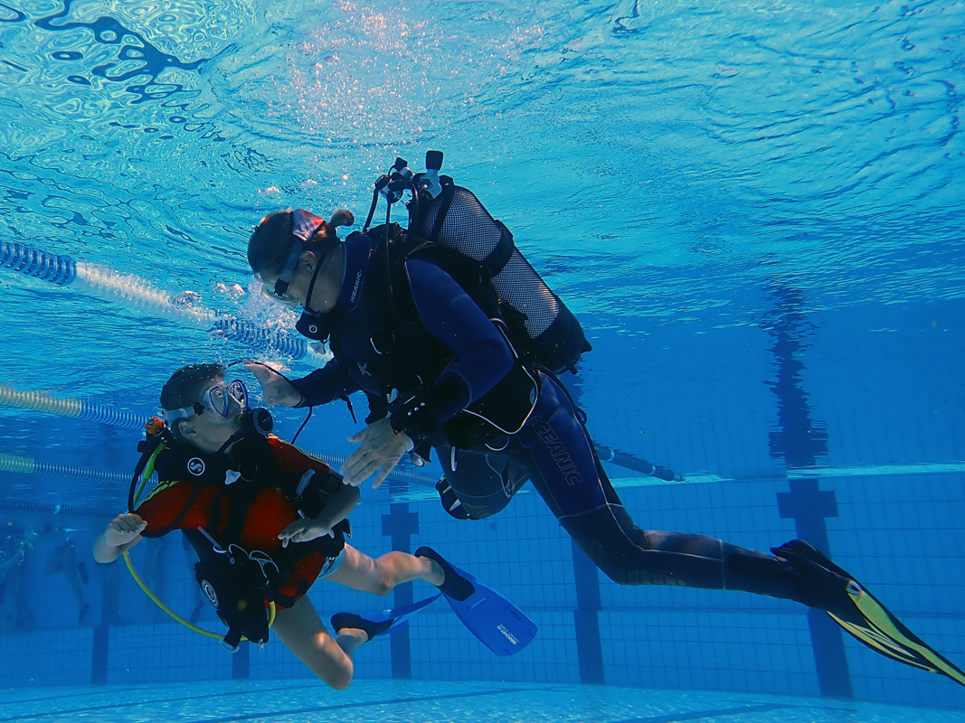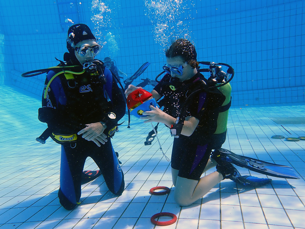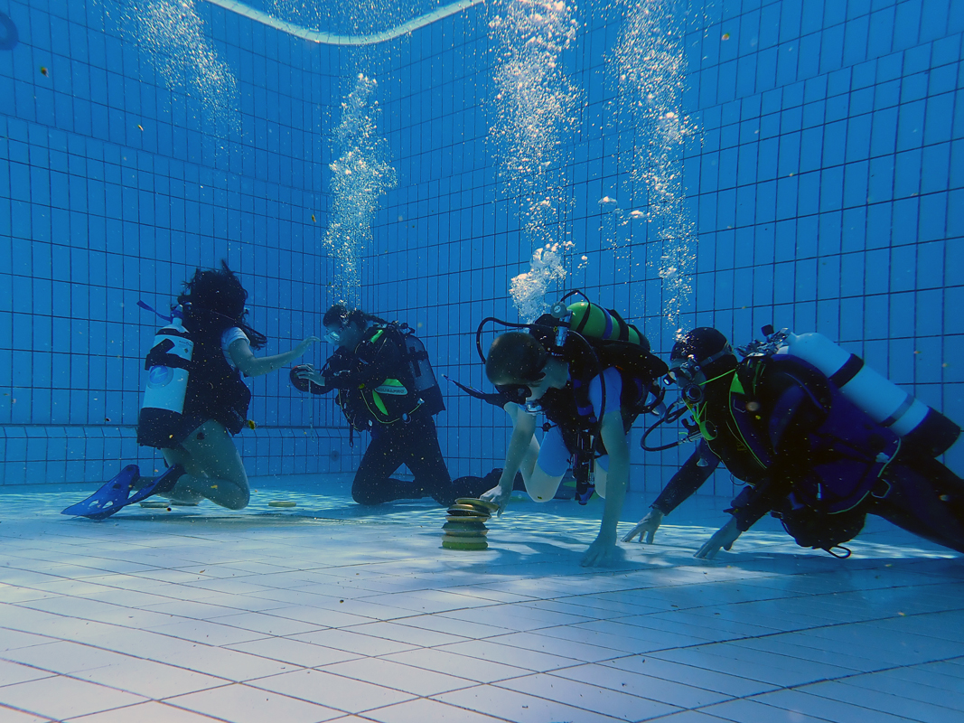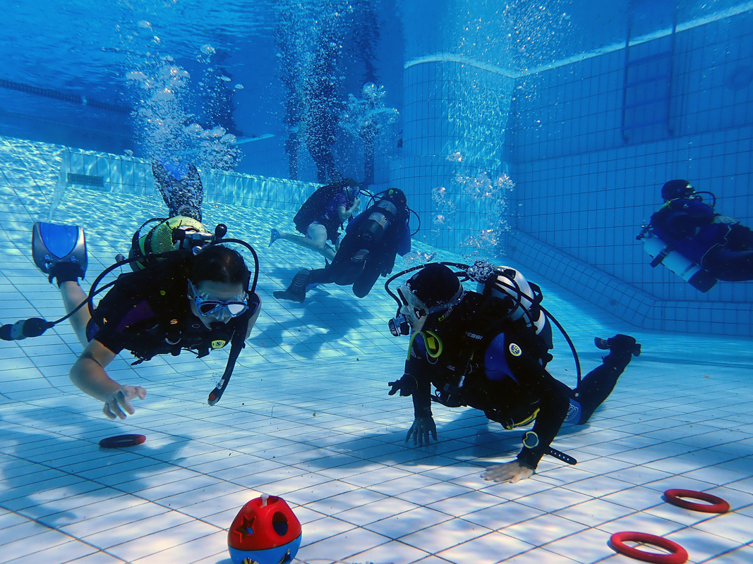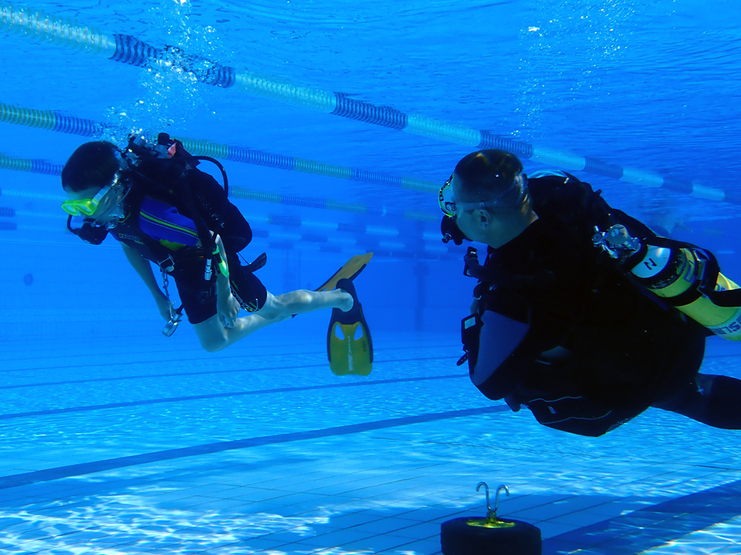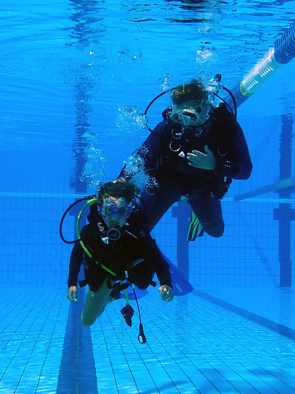 Durch die grosse Beliebtheit dieser Veranstaltung des Ferienpass, bei dem die Kinder die Möglichkeit haben in organisiertem Rahmen, einmal ins Tauchen hinein zu schnuppern, gab es dieses Jahr wieder 2 Gruppen. Eine am Vormittag und eine am Nachmittag. Danke an die Organisatoren/Innen des Ferienpass. Nach kurzem theoretischem Teil und einer «Einführung» ins praktische Tauchen im warmen Ausschwimm-Becken, wobei jedes Kind jeweils mit einem Taucher durchs grosse Schwimmbecken der KSS das Tauchen und im tiefen Bereich unter den abgesperrten Sprungtürmen einige Unterwasserspiele erleben durfte.