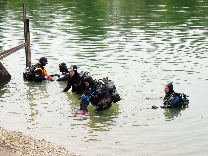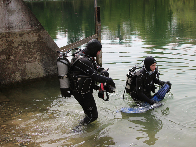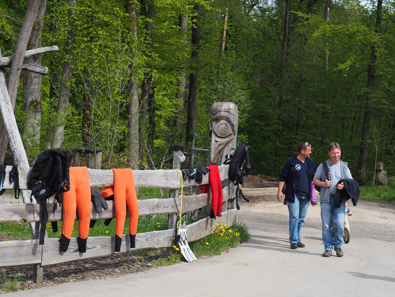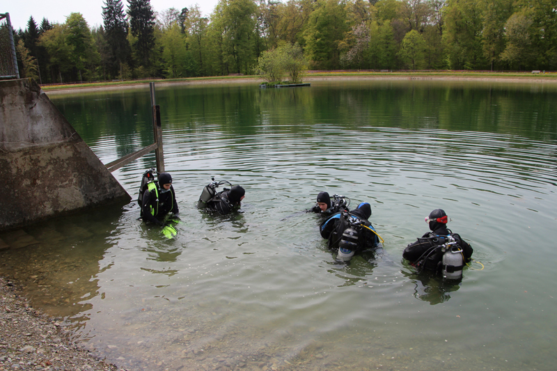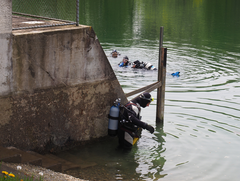 Amsel, Specht und Co. im Engiwald staunen nicht schlecht, als Ende April 18 Taucher vom Tauchclub Delphin am Engi Weiher ihr Equipment auspacken, um sich einen vergnüglichen Tauchgang im Pumpspeicherbecken zu gönnen. Wenn sie Glück haben, schaffen sie es bis auf 5 m; tiefer ist der Weiher nicht. In die Dekozeit kommt hier niemand – es ist nur der Plausch, einmal den Kopf woanders unter’s Wasser zu stecken.