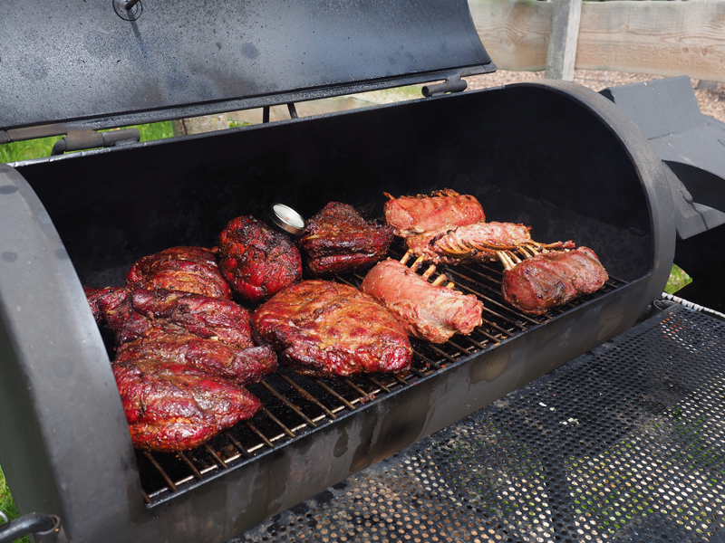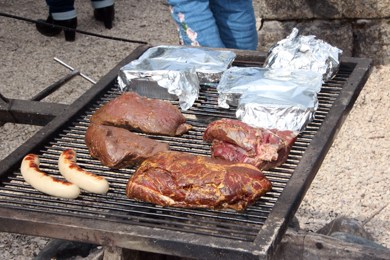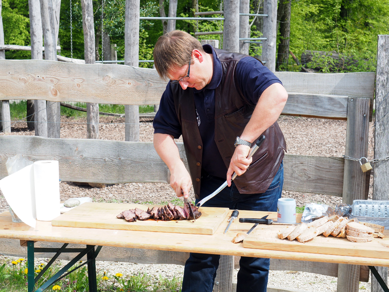 Bereits seit 11 Uhr steht die Crew am Grill, um die Wildsau mundgerecht zu garen.