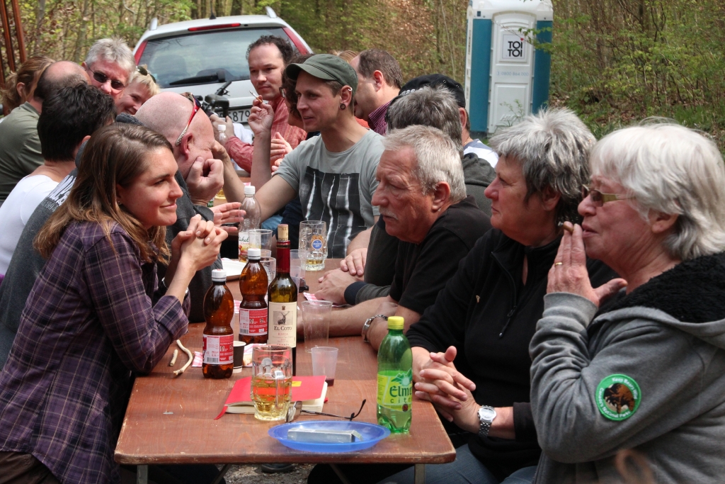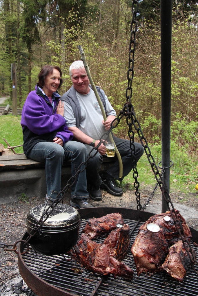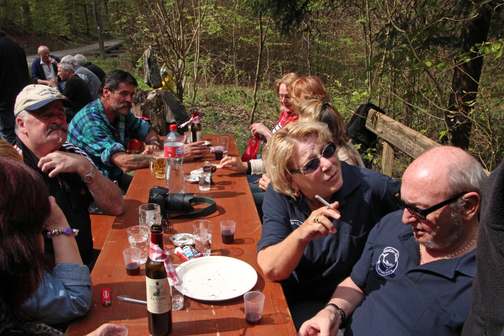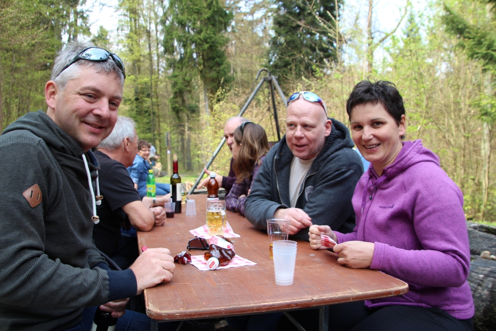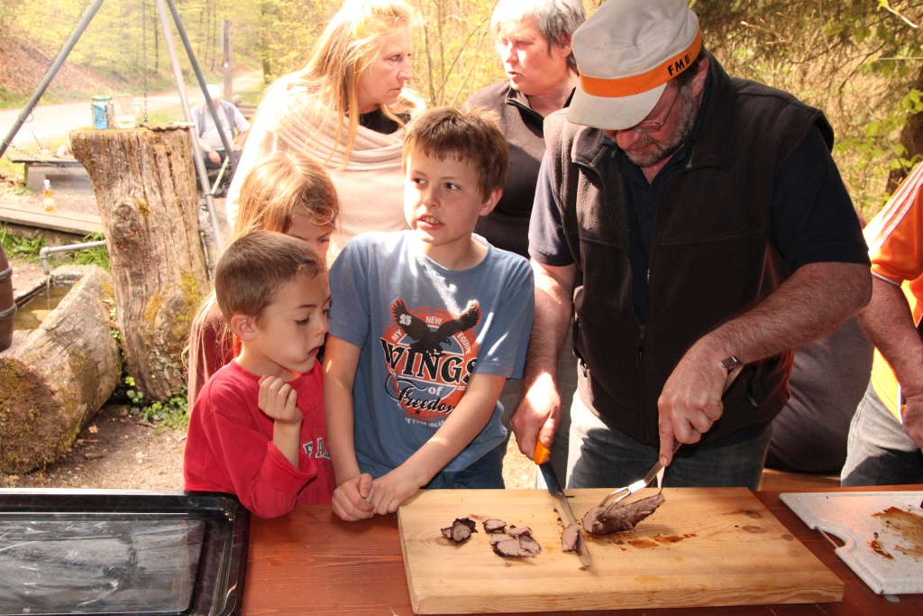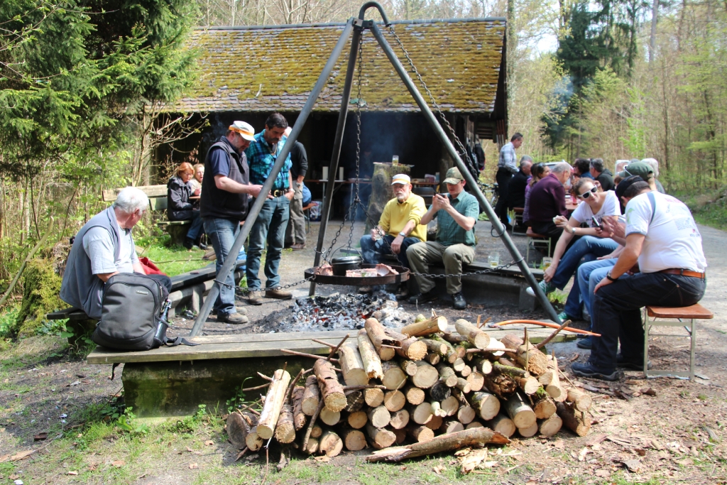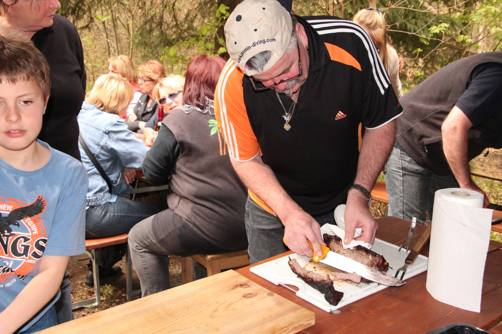 Auch dieses Jahr ist Petrus auf unserer Seite, lässt er doch die Frühlingssonne scheinen und die Temperaturen als angenehm empfinden. Vom Parkplatz Stumpenboden aus geht um 13 Uhr der kurze Fussmarsch zur Waldhütte im Kohlfirstgebiet. Hier treffen sich schlussendlich 40 Erwachsene und 5 Kinder der Delphin-Familie zur angesagten „Wildsau-Vernichtungsaktion“. Charly und seine Crew lassen keine Wünsche offen: 23 kg Wildschweinfleisch in Form von unzählingen Hackdätschli, jeder Menge Spiessli, 6 Racks mit Filet und 9 Braten fallen dieser Aktion zum Opfer. 5 Stunden lang wird gegrillt, was der Rost hergibt! Und der Boden des Bierfasses blickt uns auch bald entgegen……..