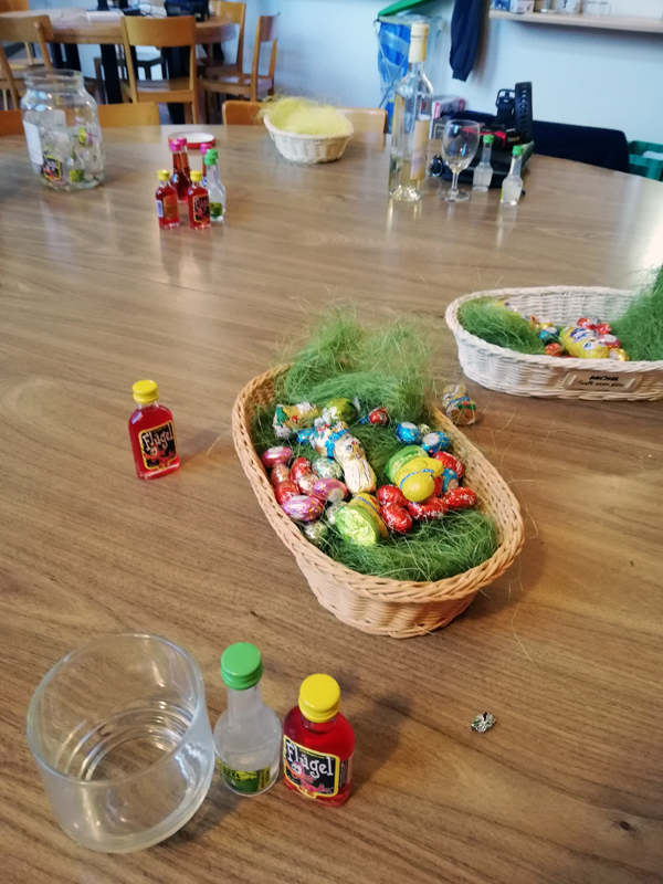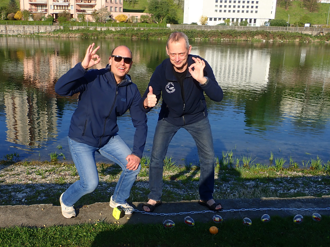 Beim traditionellen Ostereiertauchen hatte der Hase seine Verstecke schlecht gewählt, denn alle Eier wurden gefunden. Die 18 Taucher-Delphine kamen in verschiedenster Ausrüstung: Nass / Halbtrocki / Trocki ja sogar Rebreather (Kreislauftauchgerät) kamen zum Einsatz. Die Eier waren angekettet unter Wasser versteckt, jedoch schnell entdeckt und geborgen.