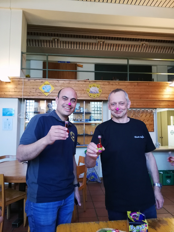 Das tolles Wetter und angenehme Wassertemperaturen (10 Grad) haben eine grosse Schar von Delphinen hervorgelockt. Das Tauchen, Zuschauen oder sogar Fotografieren hat allen grossen Spass gemacht. Ein grosses Dankeschön geht an das OK Fabian, Beat Schläpfer, Kilian und die Dessert Spenderin Jeannine.