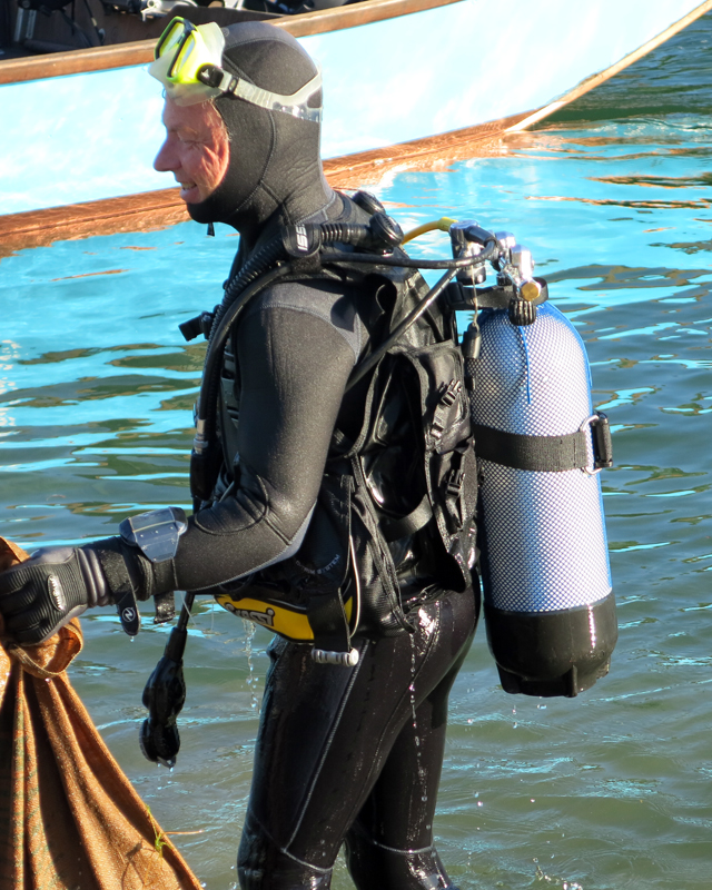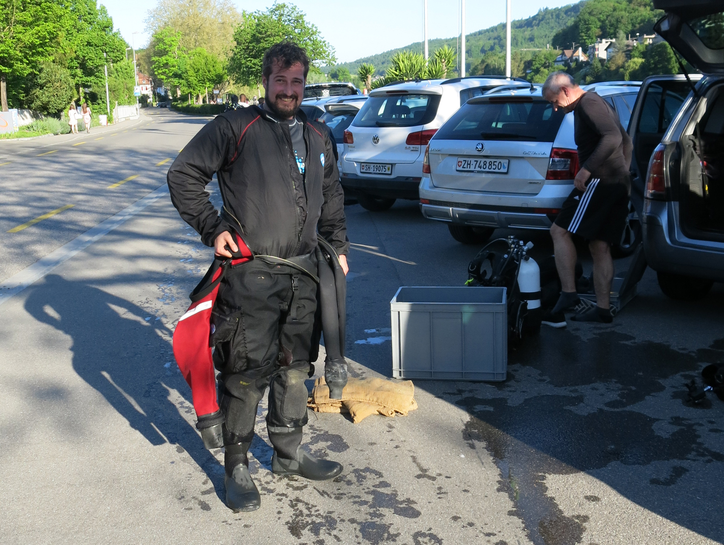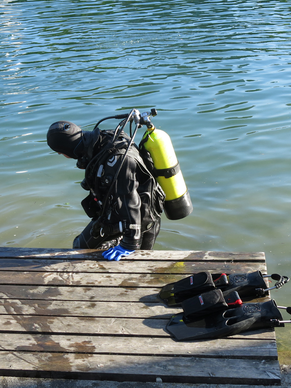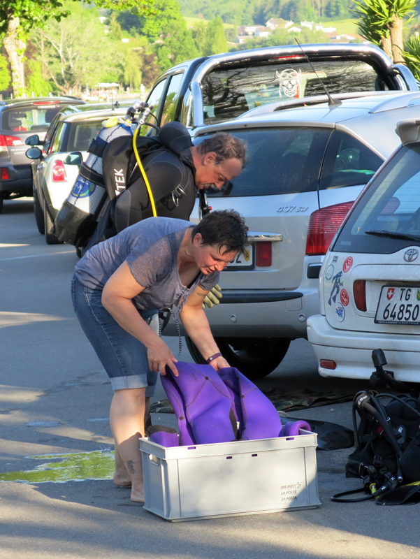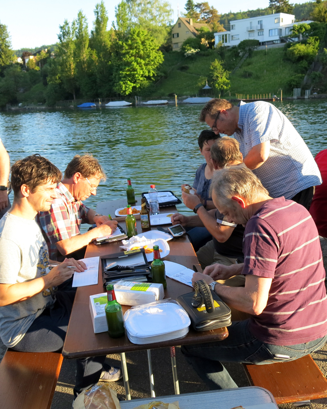Der Unrat wurde dann vom Bootsclub fachgerecht entsorgt. Zum Ausklang servierte der gastgebende Bootsclub viel Bier, noch mehr Wasser, dann auch Wurst vom Grill mit Brot und Chips. Bei schöner Abendsonne bedankten sich Tauchleiter Kilian und der Bootsclub-Präsident Sigi bei Allen für die geleistete Arbeit, die tolle Zusammenarbeit und die Freundschaft.