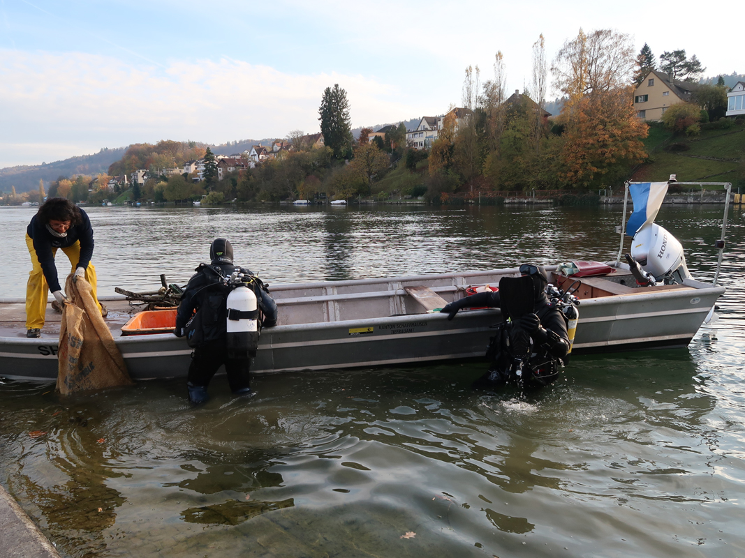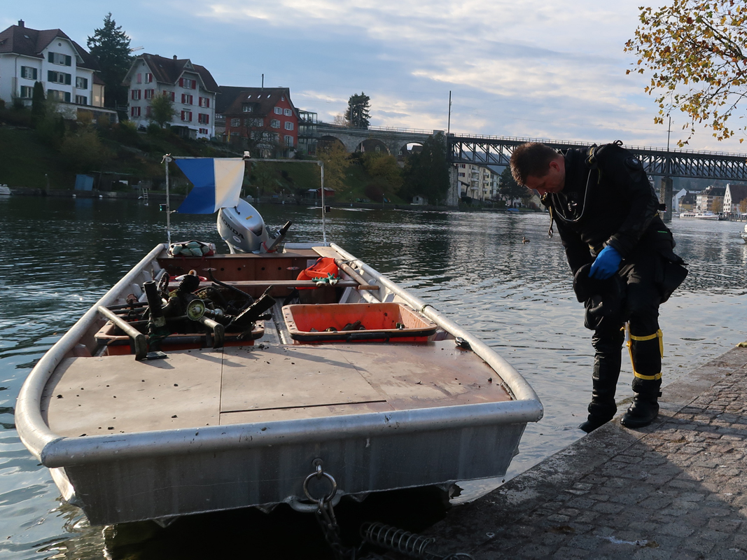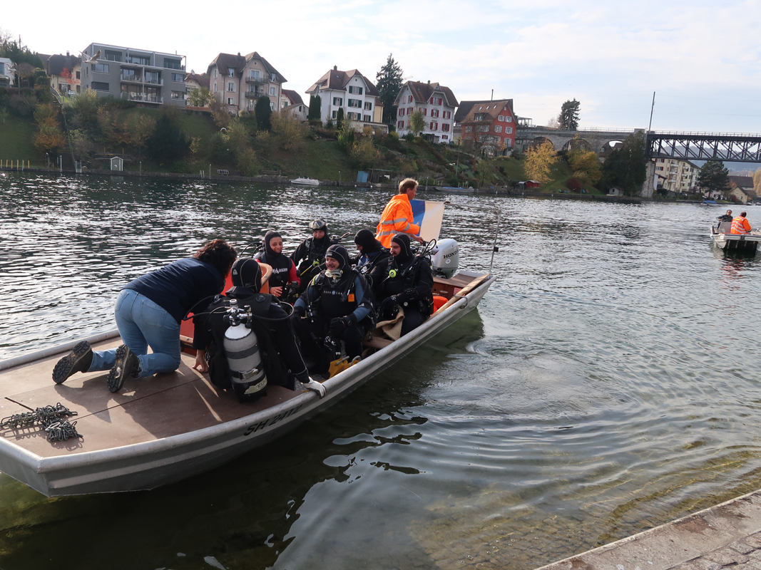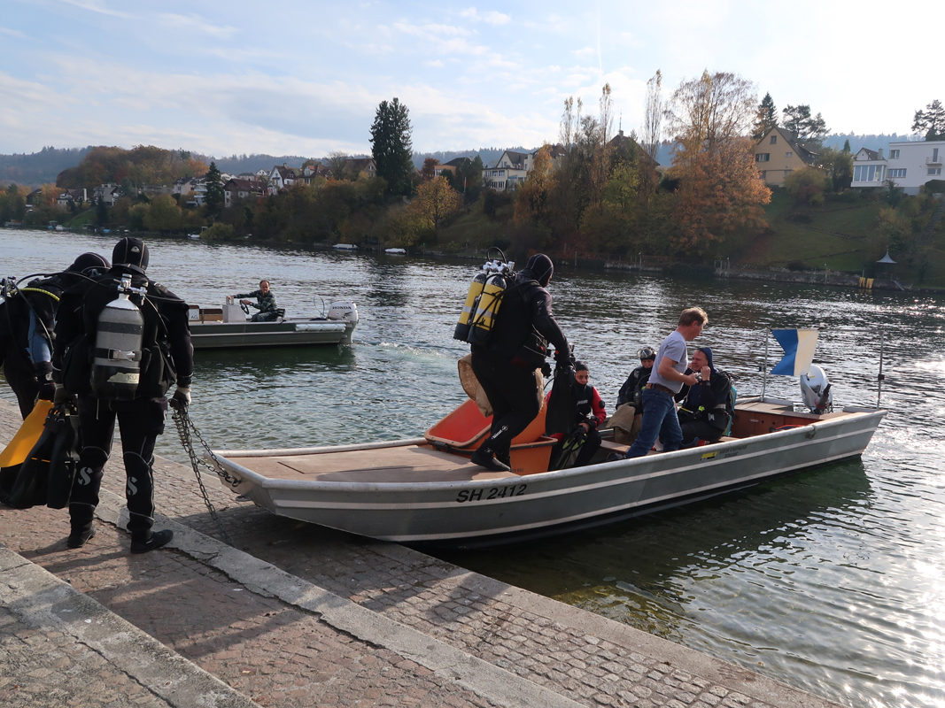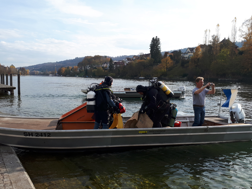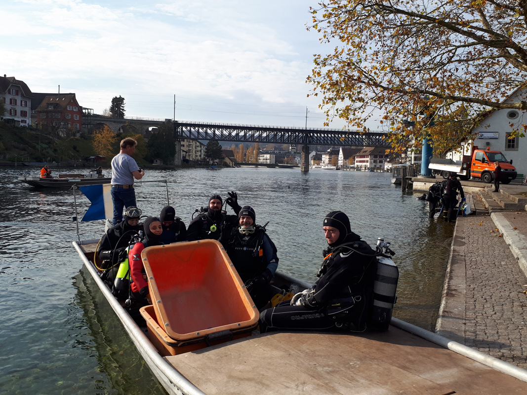 Auch bei der dritten Rheinputzete von diesem Jahr, organisiert vom Tiefbauamt Schaffhausen, herrschten wieder ideale Bedingungen. Das Wasser hatte noch 13 Grad, die Sicht unter Wasser war sagenhaft und die Sonne schien.