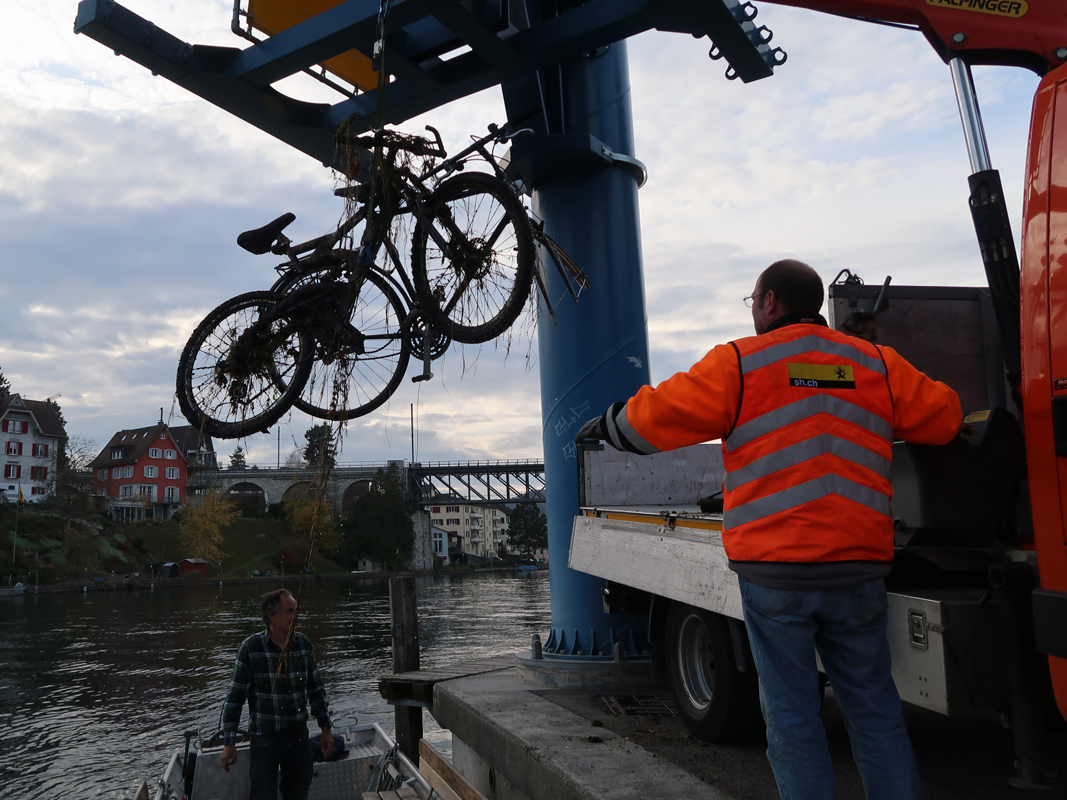 Highlights von diesem Einsatz waren: altes Schwert (welches Roli in die Archäologie bringen wird), Perlenkette (ist die wohl wirklich echt?), Fahrräder und wieder ein gaaaaaaaaaanz schwerer Gully-Deckel. Dieser Unrat wurde vom Tiefbauamt abtransportiert und dann fachgerecht entsorgt.