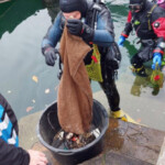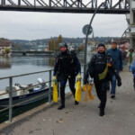 Deshalb verschwanden unsere Taucher mit Jutesäcken ausgerüstet im 13 °C kalten Wasser und suchten den Bereich vom Salzstadel bis zur Schifflände nach Gegenständen ab, die nicht in den Rhein gehören.