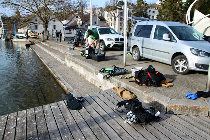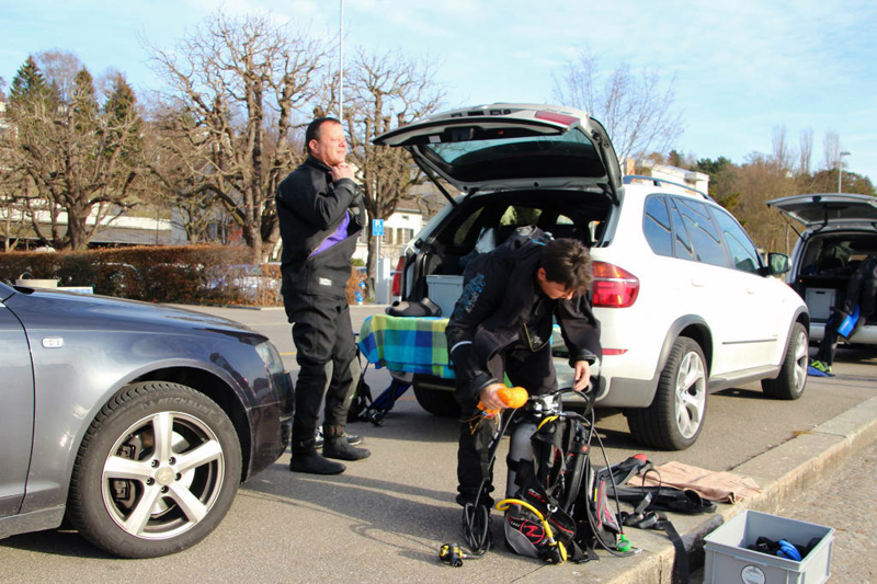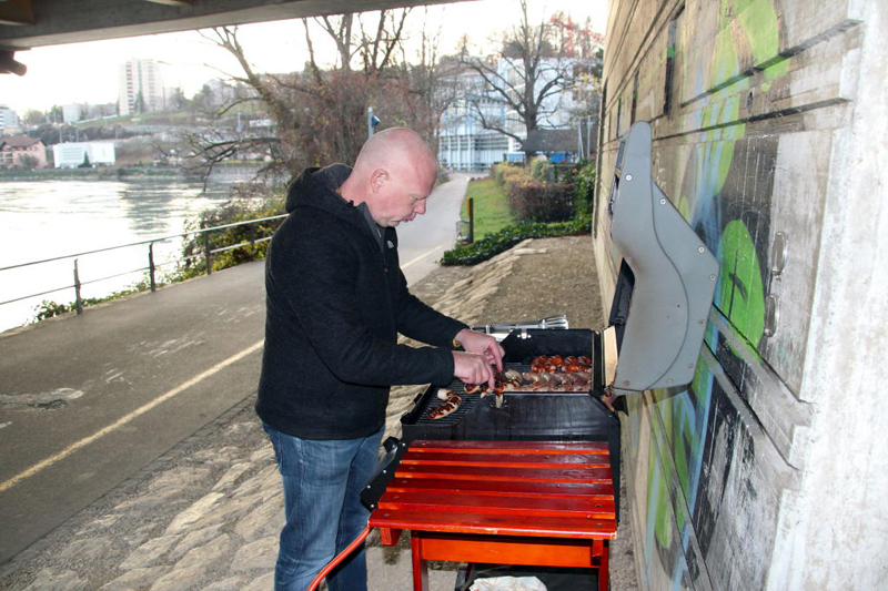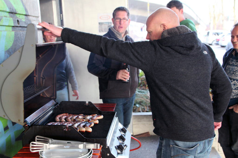 Nach diesem doch recht anstrengenden Einsatz treffen sich Taucher und Hilfsmannschaft im Clublokal, wo die vom Kanton spendierten Würste auf dem Grill ihr Ende finden.
