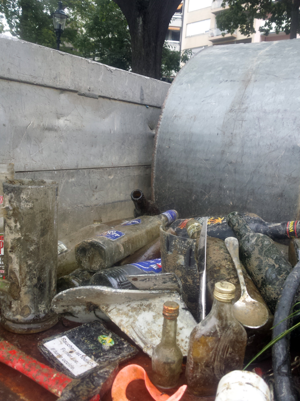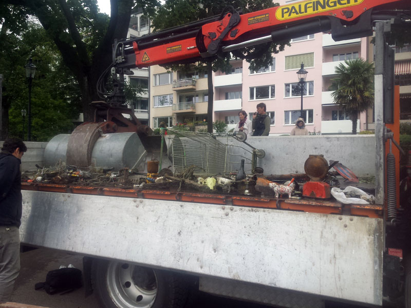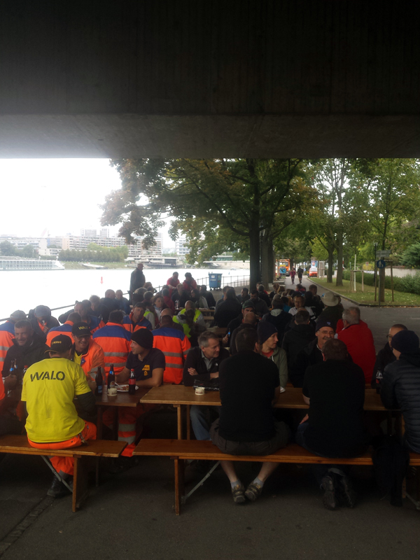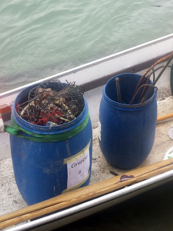 Das anschliessende Besichtigen des Unrates war beeindruckend. Das feine Mittagessen stärkte die ganze Helfertruppe. Ruedi Aerni und sogar der auf Inspektion anwesende Regierungsrat Christoph Brutschin [Vorsteher des Departements für Wirtschaft, Soziales und Umwelt (WSU)] bedankten sich bei allen Helfern. Wir haben alle Grosses vollbracht, einen etwas saubereren Rhein hinterlassen und sind gesund und unfallfrei ins Schaffhauserland zurückgekehrt.