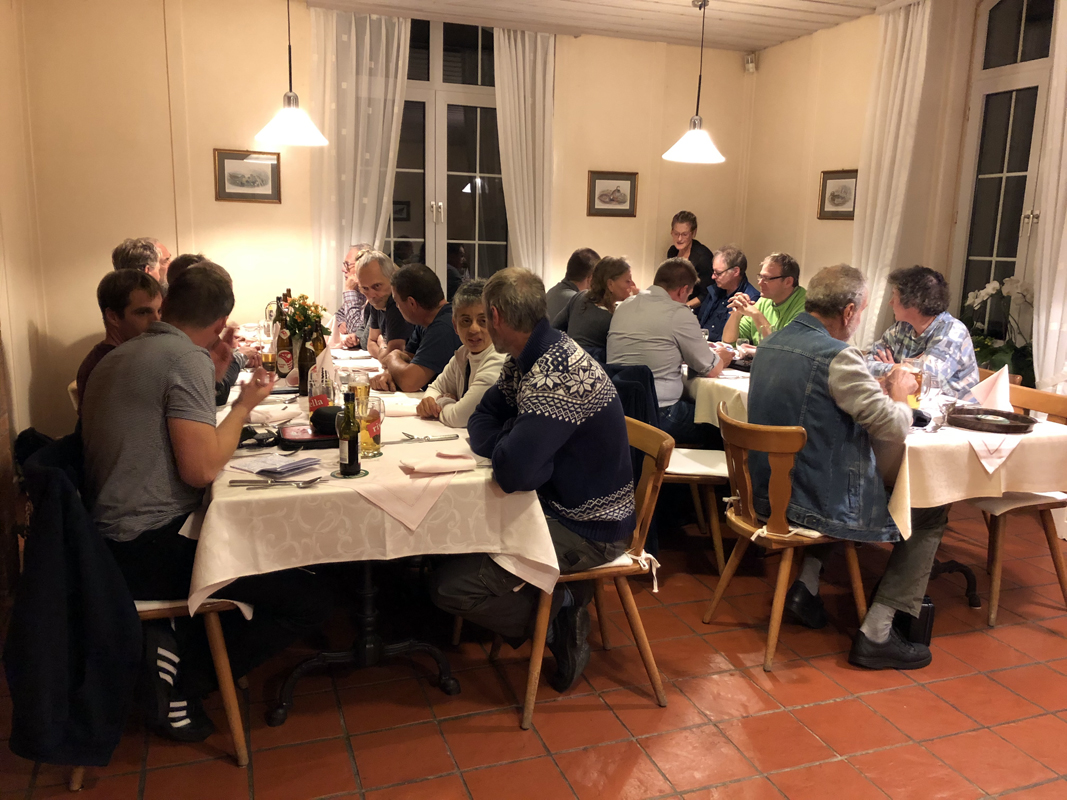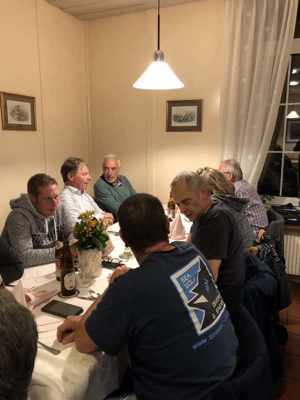 Dieses Jahr genossen die 16 Taucher und 6 «Mitesser» die Spaghetti mit verschiedenen Saucen im Restaurant Bahnhof in Schlatt, da das Paradies geschlossen bleibt (bis März 2020).