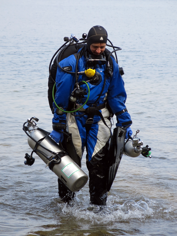 Am Ziel wurde alles Tauch-Material abgeladen und die Trockis angezogen. In 4 Zweierteams