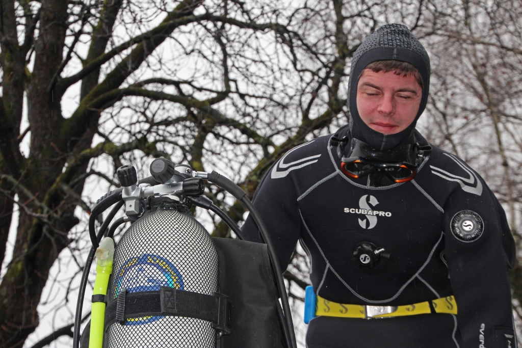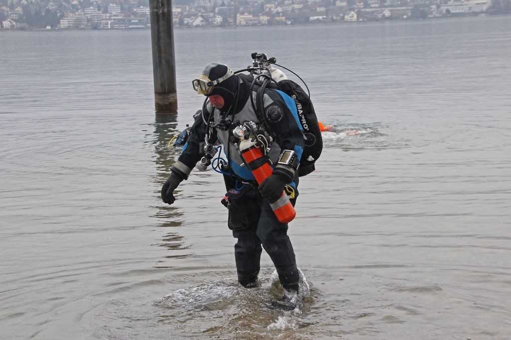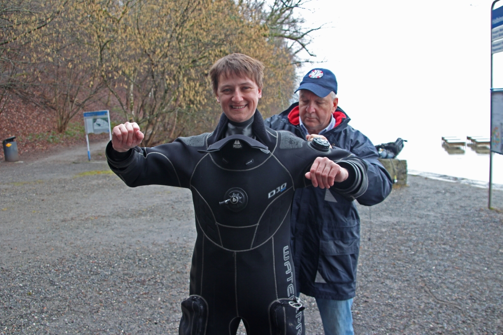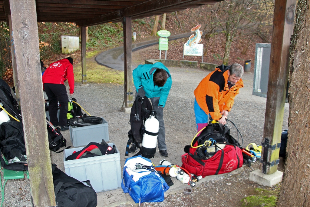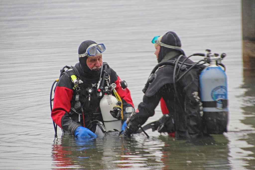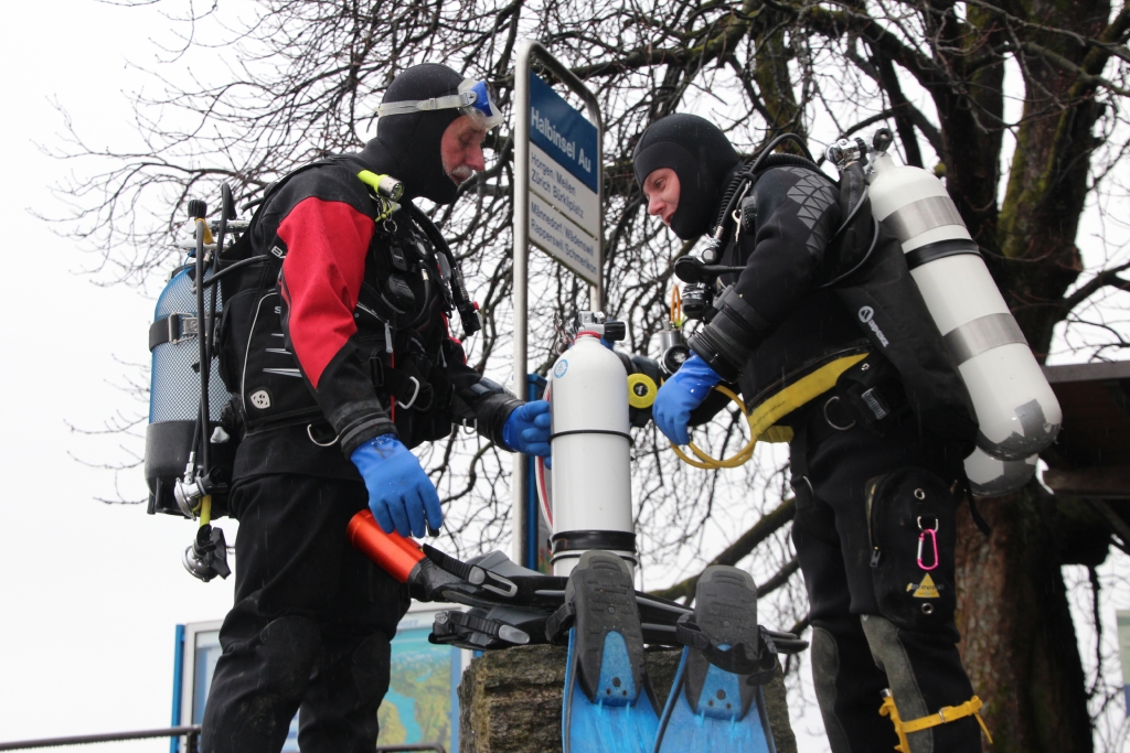 Dabei gibt`s z. T. böse Überraschungen, ist doch einem Mitglied die Luft von 200 bar auf 100 bar „entschwunden“ und ein richtiger Tauchgang vor der Halbinsel Au in weiter Ferne. Zum Glück gibt’s Kollegen! Ein Stage lässt den Tauchgang doch noch zum Erfolg werden.