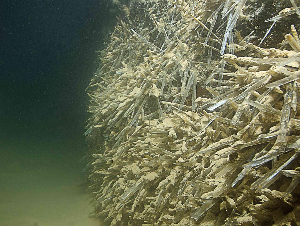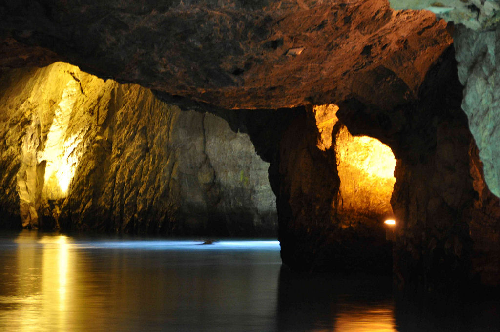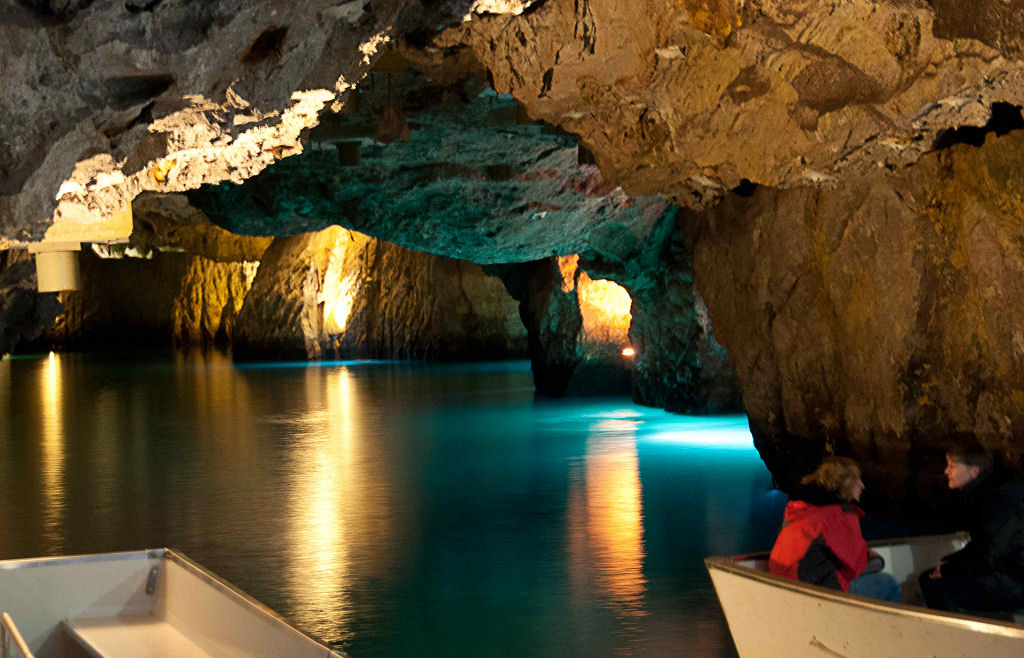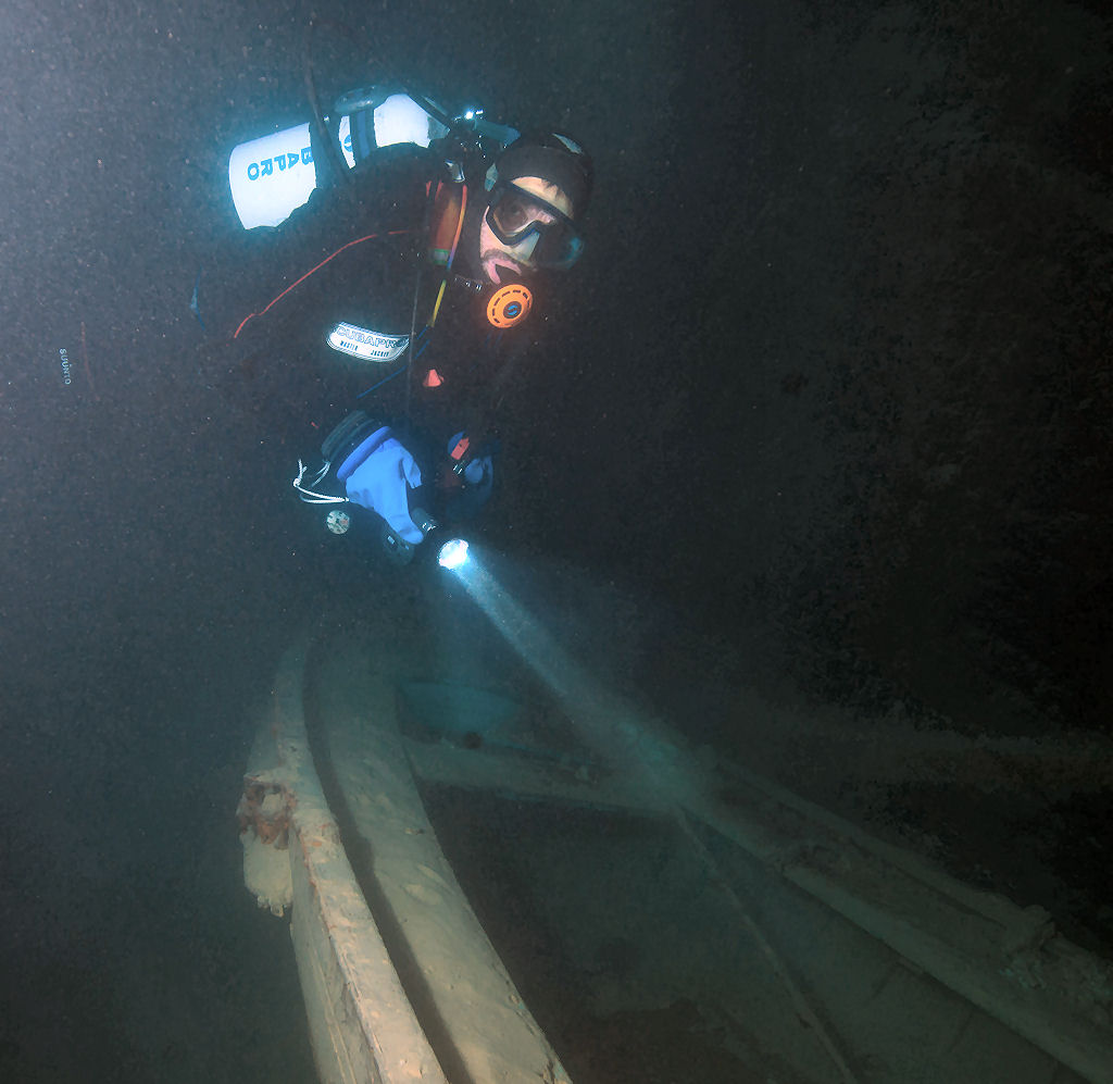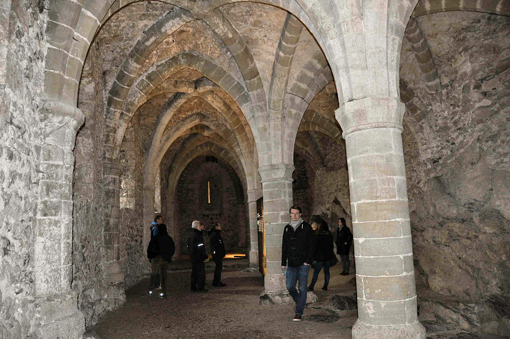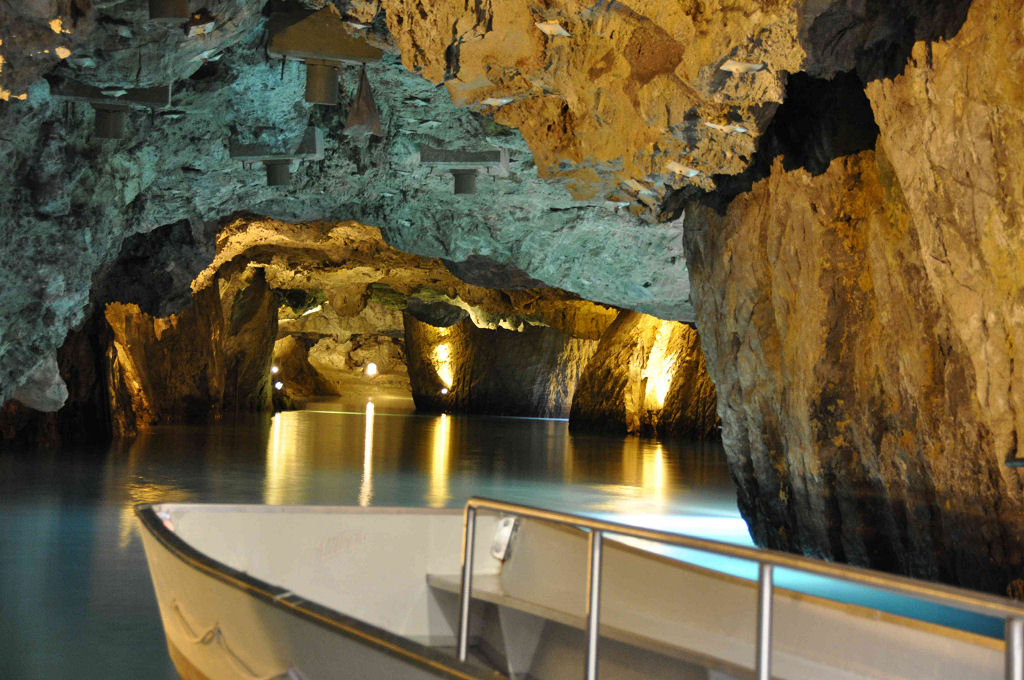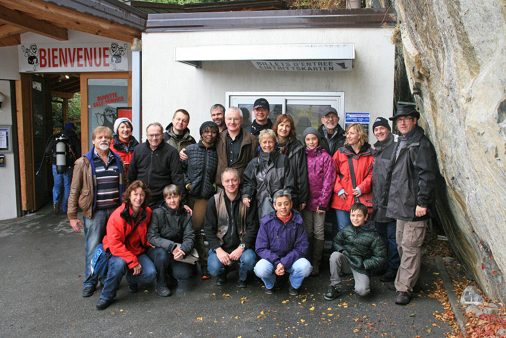 Das eigentliche Highlight des Wochenendes ist der Höhlentauchgang am nächsten Morgen im Lac Souterrain, St-Léonard. Dem Publikum ist diese unterirdische Grotte seit 1943 zugänglich. Mit einer Gesamtfläche von 6’000 qm, einer Länge von 300 m und einer Breite von 20 m ist dieses Gewässer der grösste, natürliche und befahrbare unterirdische See Europas. Die Wassertemperatur beträgt konstant 11 °C. Mystisch wirkt die ausgeleuchtete Höhle und die höchstens 5 m Wassertiefe sind für uns Taucher eine echte Herausforderung, sind wir doch gezwungen, ständig so perfekt austariert zu sein, dass nicht das kleinste Wölkchen vom Boden aufgewirbelt wird. Einige Regenbogenforellen kreuzen unseren Weg. Weiter sind drei Wracks (gesunkene Touristenboote), eine Wand besetzt mit Gipskristallen und natürliche Formationen aus Gipsgestein die Highlights dieses Tauchgangs. Mit gut gefüllter Weste paddeln wir im «Rückenschwumm» zurück und geniessen zum Abschluss nochmals die mystische Stimmung dieser Grotte.
