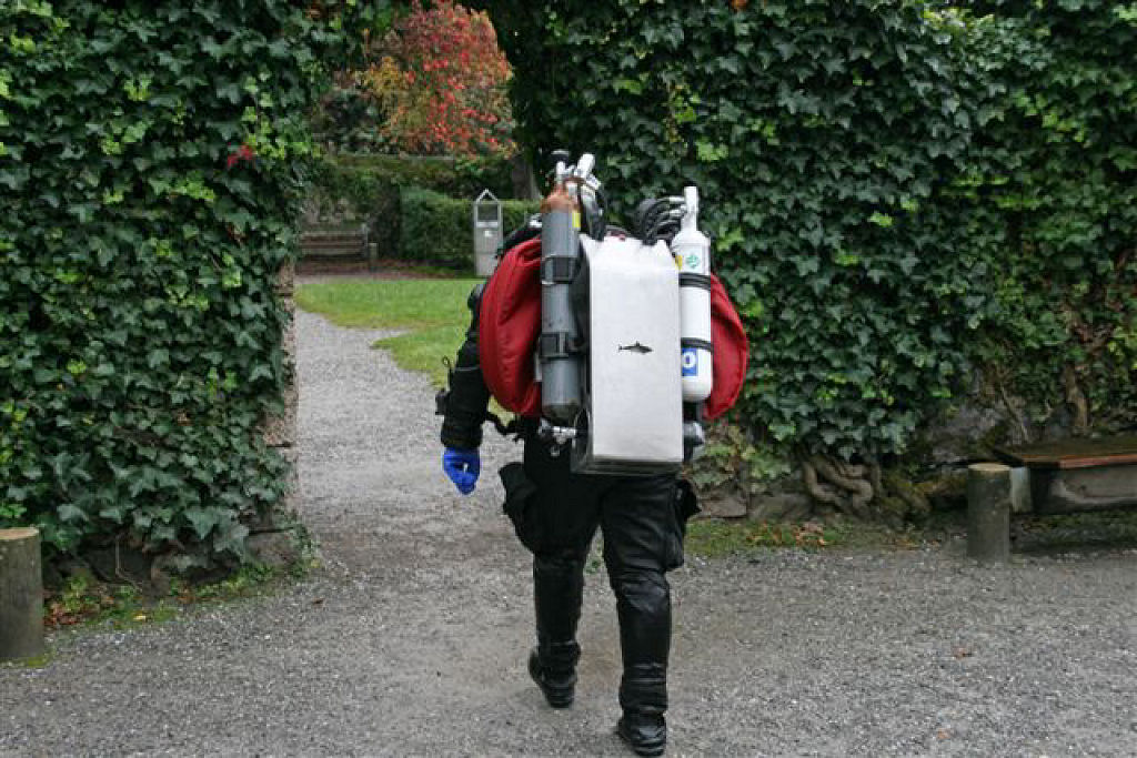 Das über 1000 Jahre alte Schloss Chillon, Veytaux, ist unser erstes Ziel. Majestätisch thront die Burg über dem Genfer See. Für unsere Nichttaucher ist eine Schlossbesichtigung angesagt. Die es lieber nass und kalt haben möchten, können rund um das Schloss ihrem Unterwasserhobby frönen. Oben ist die Sicht ganz passabel, aber ab 15 m wird’s trüb und milchig.