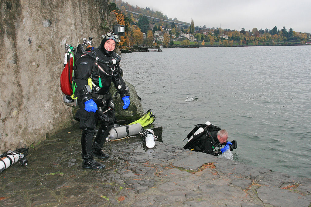 Wasser, Wasser – nichts als Wasser; von oben und von unten! Petrus meint es nicht besonders gut mit uns, als 13 tauchwillige Delphine und 7 Landratten an einem Samstag im November quer durch die Schweiz zum Genfer See fahren.
