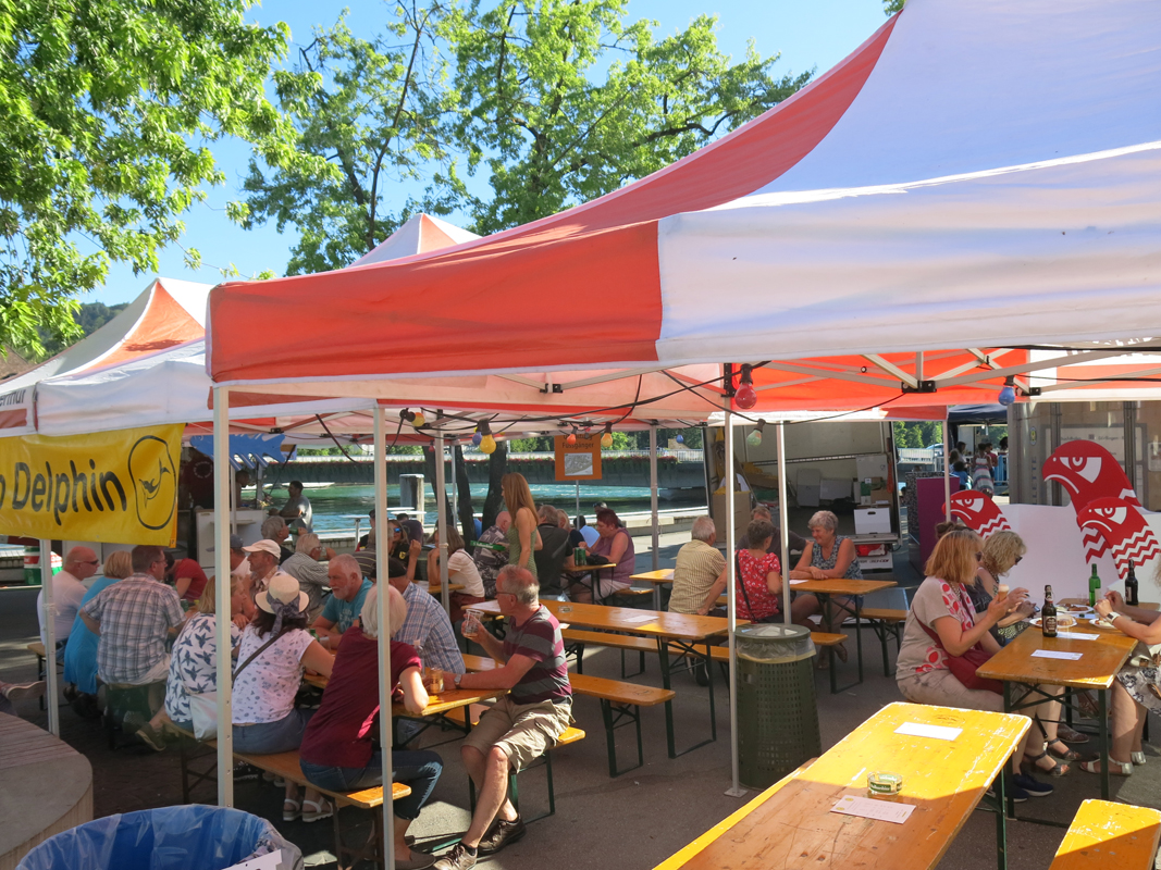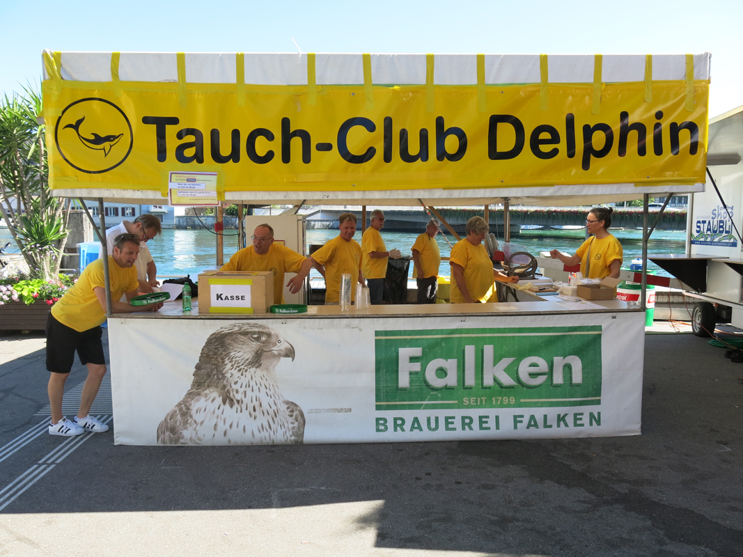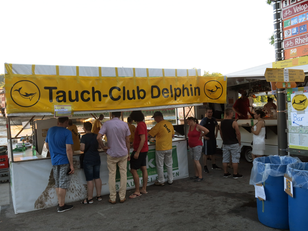 Der Tauchclub Delphin Schaffhausen stellte sich auch beim diesjährigen Unterstadtfest den Herausforderungen, ohne eigenes Geschäft in der Unterstadt als Backup zu haben, eine Bar und die legendäre Fischbeiz auf die Beine zu stellen.