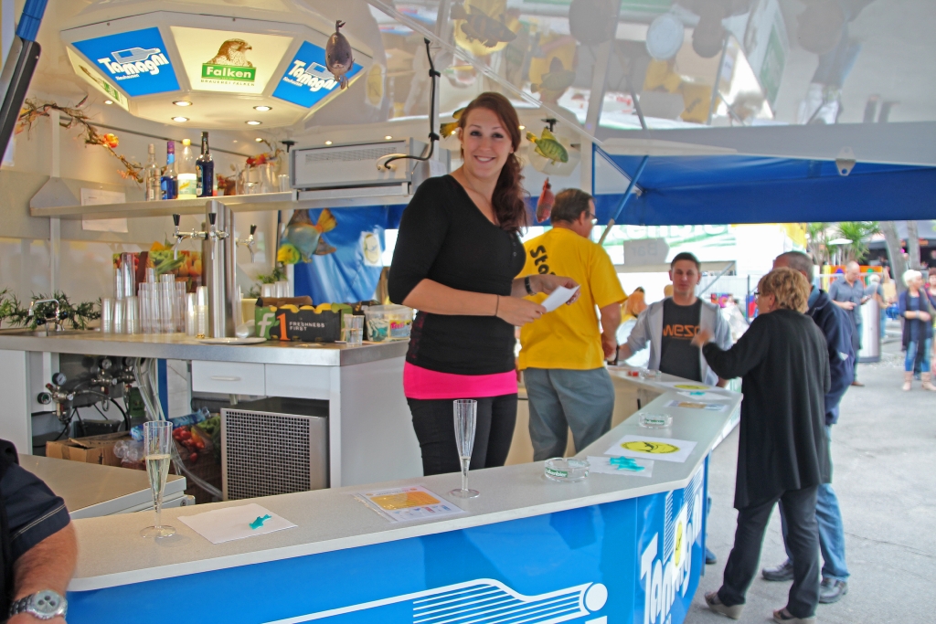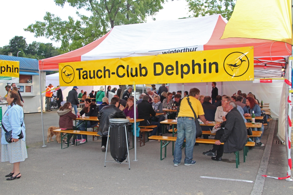 Anfangs ist es noch ganz human. Zwar weit entfernt von einem warmen, sonnigen Sommertag beginnt das Fest um 18 Uhr. Unsere Fischknusperli schwimmen bereits in der Friteuse und die Delphin-Mannschaft wartet auf hungrige Kundschaft. Zugegeben, es gab Jahre, da lief das Geschäft besser. Aber wer geht schon gerne in dicker Jacke und Pulli an ein Sommerfest?