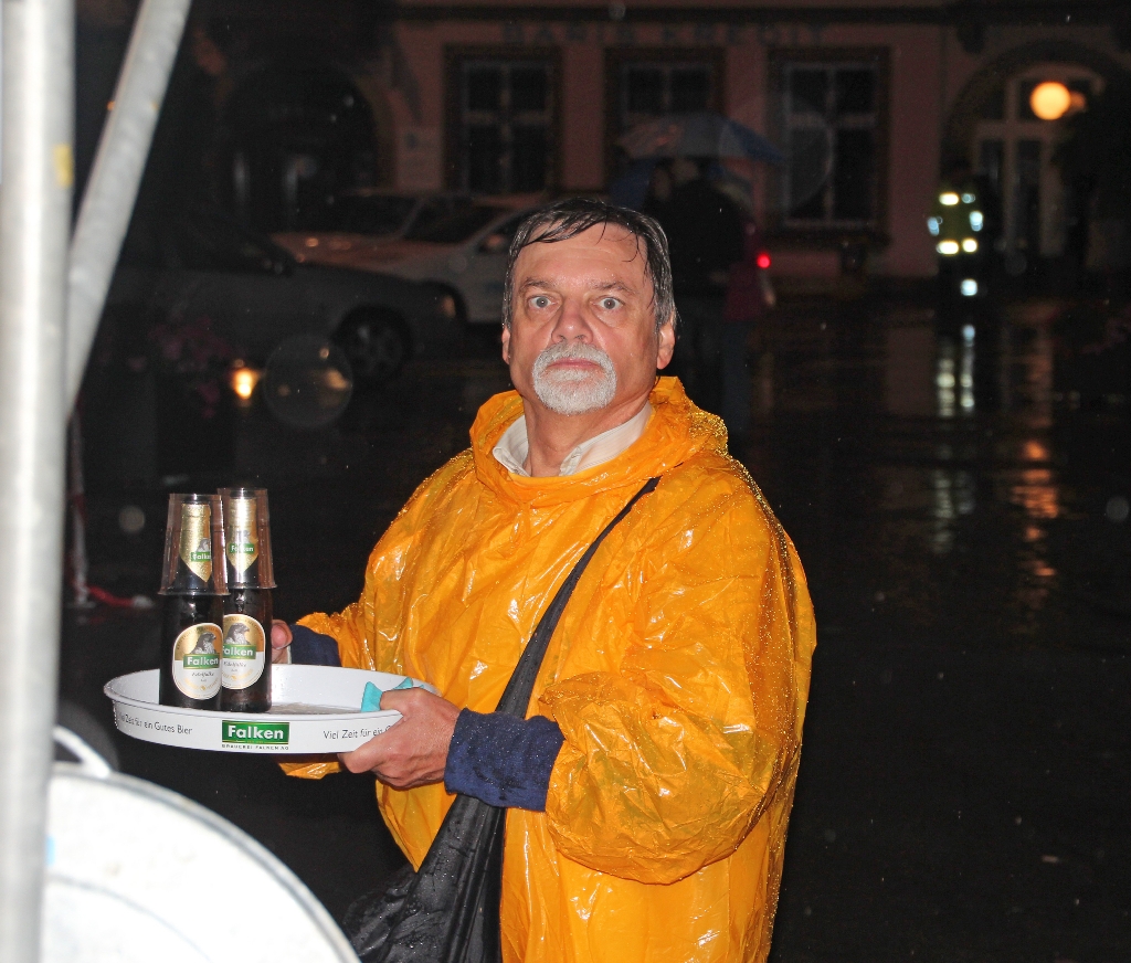 Trotz „Segen von oben“ sind uns die Barbesucher treu geblieben, der Drink schmeckt auch im Nassen und die Abräumequipe hat bis in die Morgenstunden zu tun.