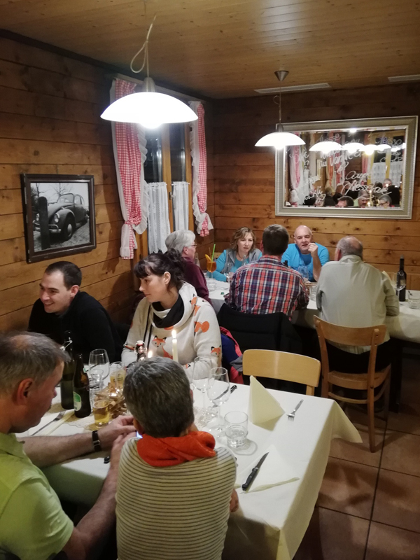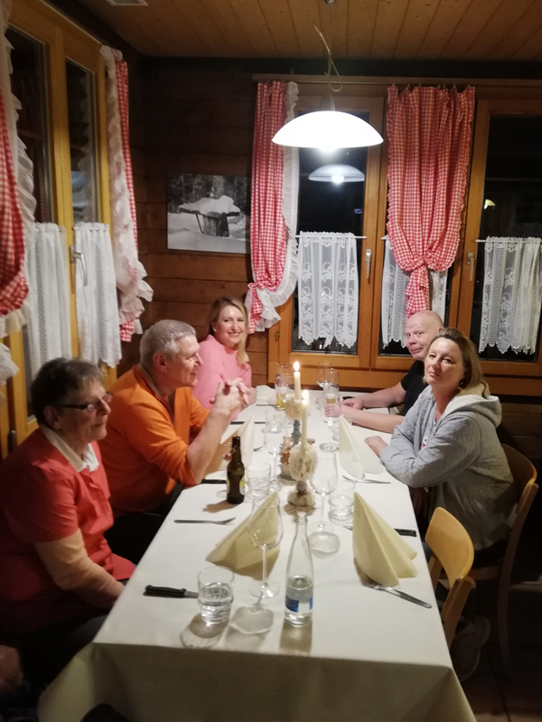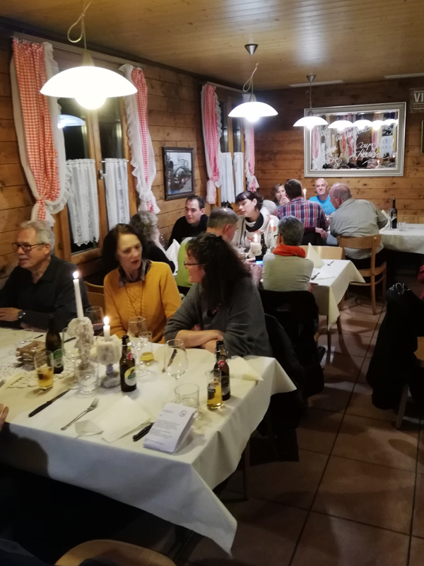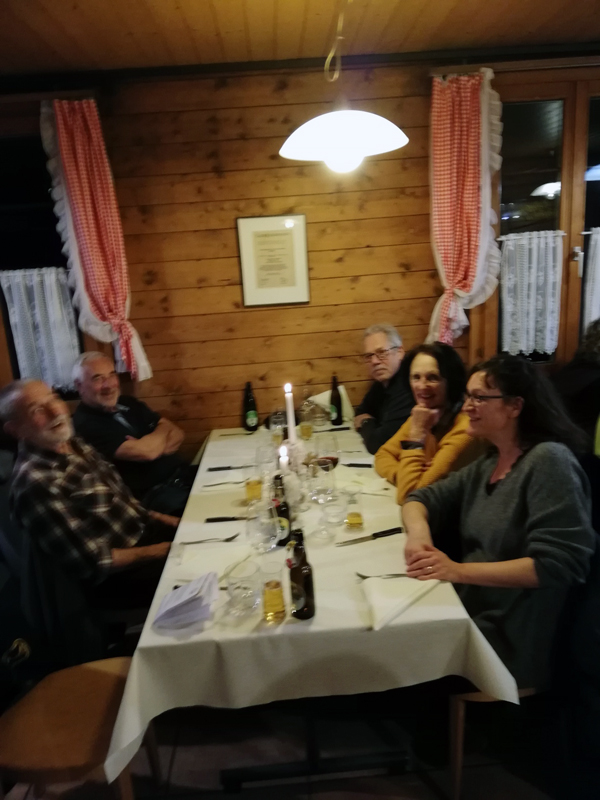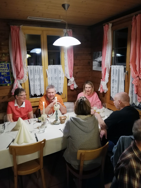 Die Gastgeberin im Restaurant beim Beringer Randenturm Gianna und ihr Team haben den Delphinen nach verschiedenen Vorspeisen dann die obligaten Spezialitäten vom heissen Stein, Pouletflügeli oder sonstige Leckereien serviert. Wo dann noch Platz war, wurde sich auch ein feineres Dessert (z.B. Huusdessert mit heissen Waldbeeren und Vanilleeis) gegönnt. Oder halt nur der «Verteiler» bestellt.